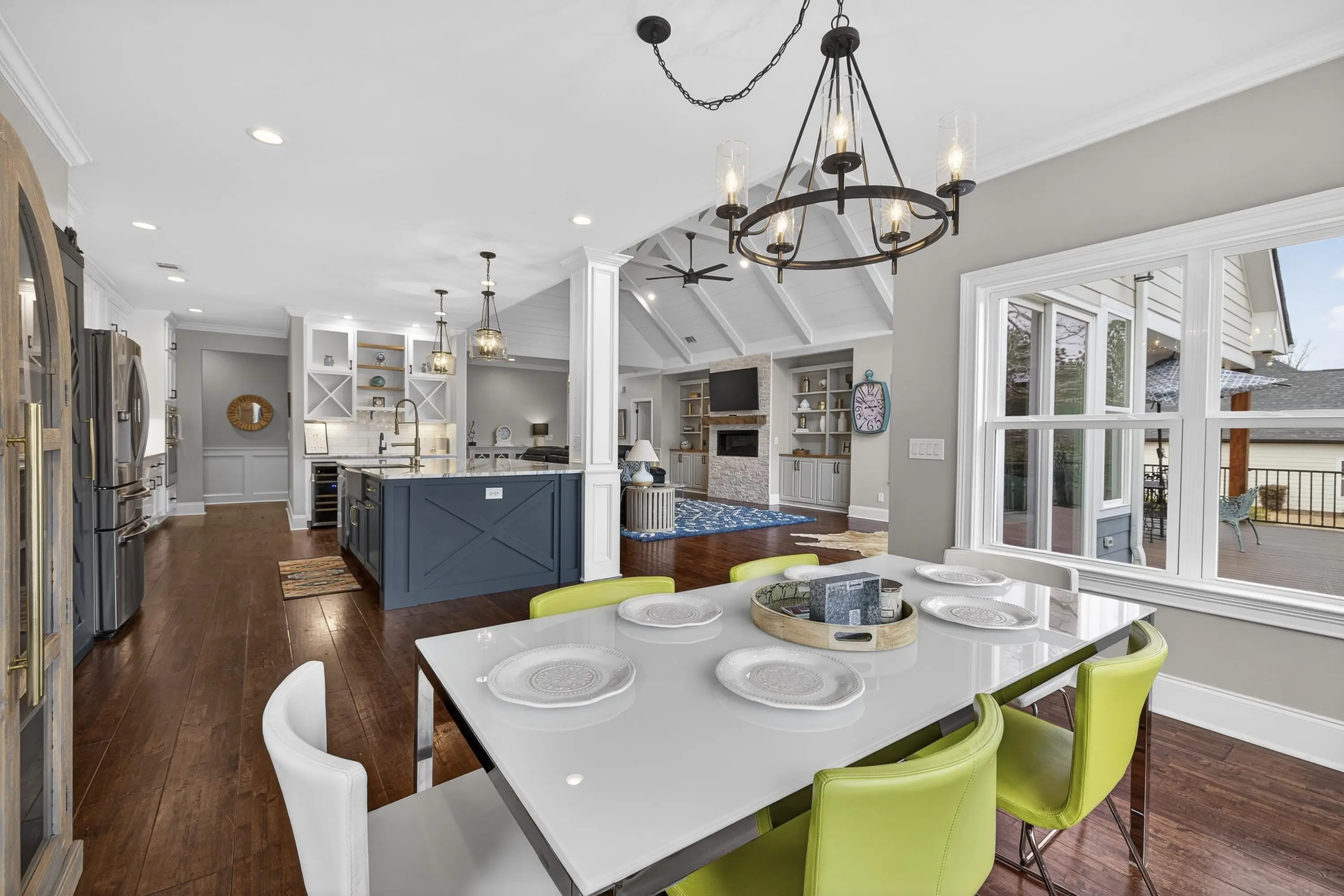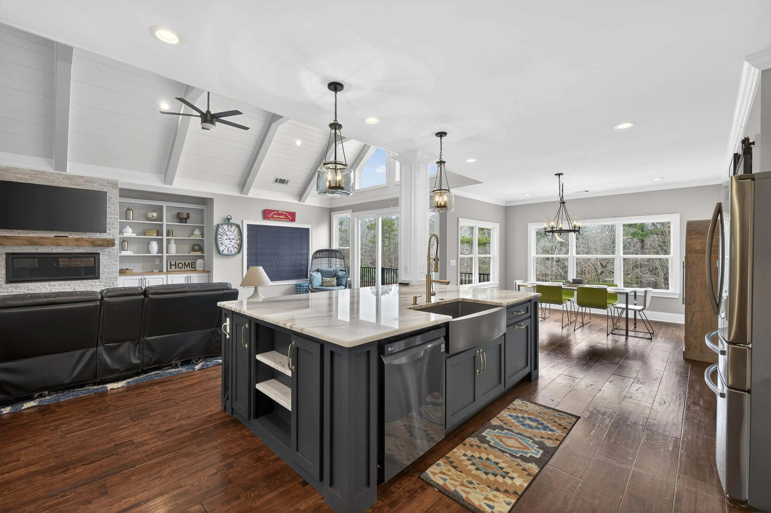 Wake up to lake breezes and endless entertaining possibilities in this stunning, better-than-new 7-bedroom Craftsman in Harmony Bay â a gated Lake Oconee community favorite. With over 6,000 sq. ft. of high-end living, dramatic vaulted spaces, multiple fireplaces, a gourmet kitchen, and expansive outdoor areas overlooking a pool, fire pit and private yard, this home is designed for multigenerational living, weekend retreats, and unforgettable lakefront living just a short golf-cart ride from the community boat ramp and docks.Step inside to find over 6,000 sq. ft. of high-quality finishes: hardwood floors, a vaulted beamed living room with stone fireplace, and a gourmet kitchen with granite countertops and upgraded appliances. The main-level master suite is a private spa-like retreat complete with its own fireplace. Downstairs, the walk-out terrace level expands your entertaining options with a second kitchen, family room with fireplace and three additional bedrooms â perfect for guests or multi-gen living. Outdoor living is exceptional: covered deck and patio both face the swimming pool, fire pit and a lush, private backyard on a spacious 1+ acre lot. Short walk or golf-cart ride brings you to the community boat ramp, docks and pavilion for full Lake Oconee access inside this gated neighborhood. Why this home? Prestige location, generous indoor/outdoor living, top-tier finishes and the best price in a Lake Oconee lakefront community â do the math. Schedule your private showing today and imagine life by the lake.