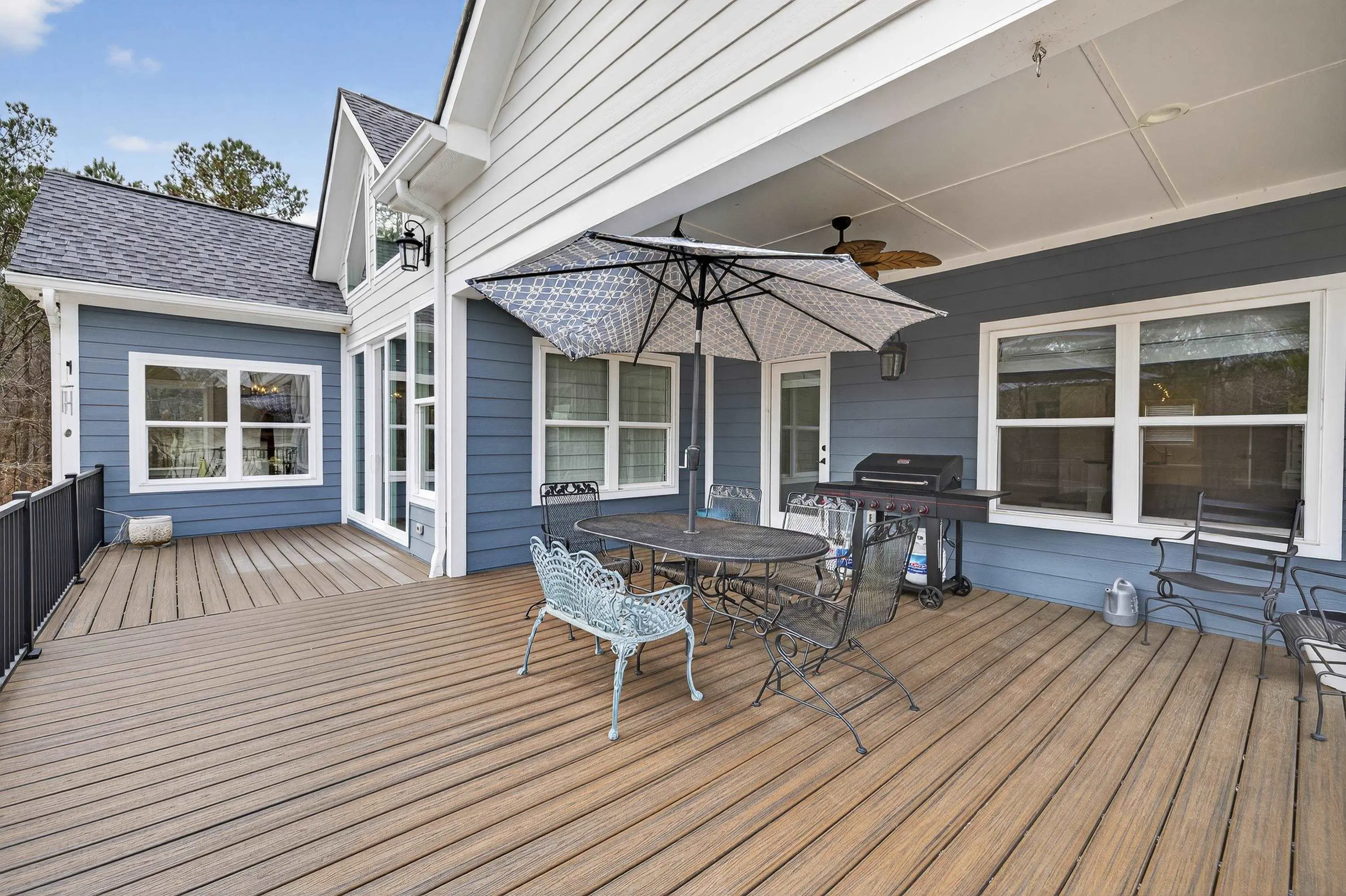 - Exterior FeaturesCovered Deck, Covered Porch, Patio