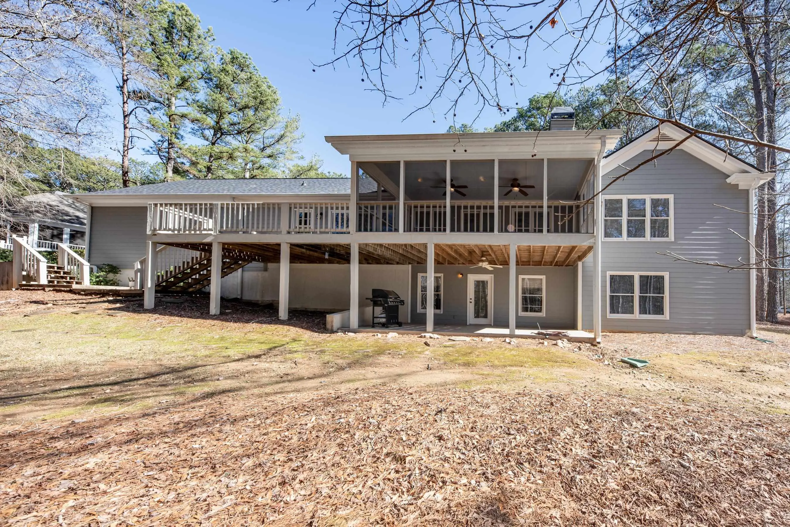 - Exterior FeaturesBalcony, Covered Deck, Covered Porch, Screened Porch