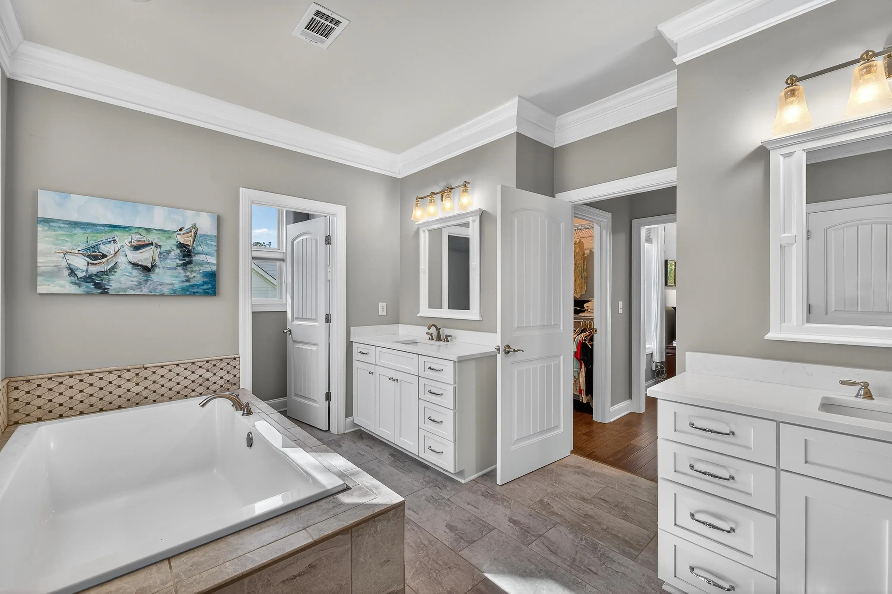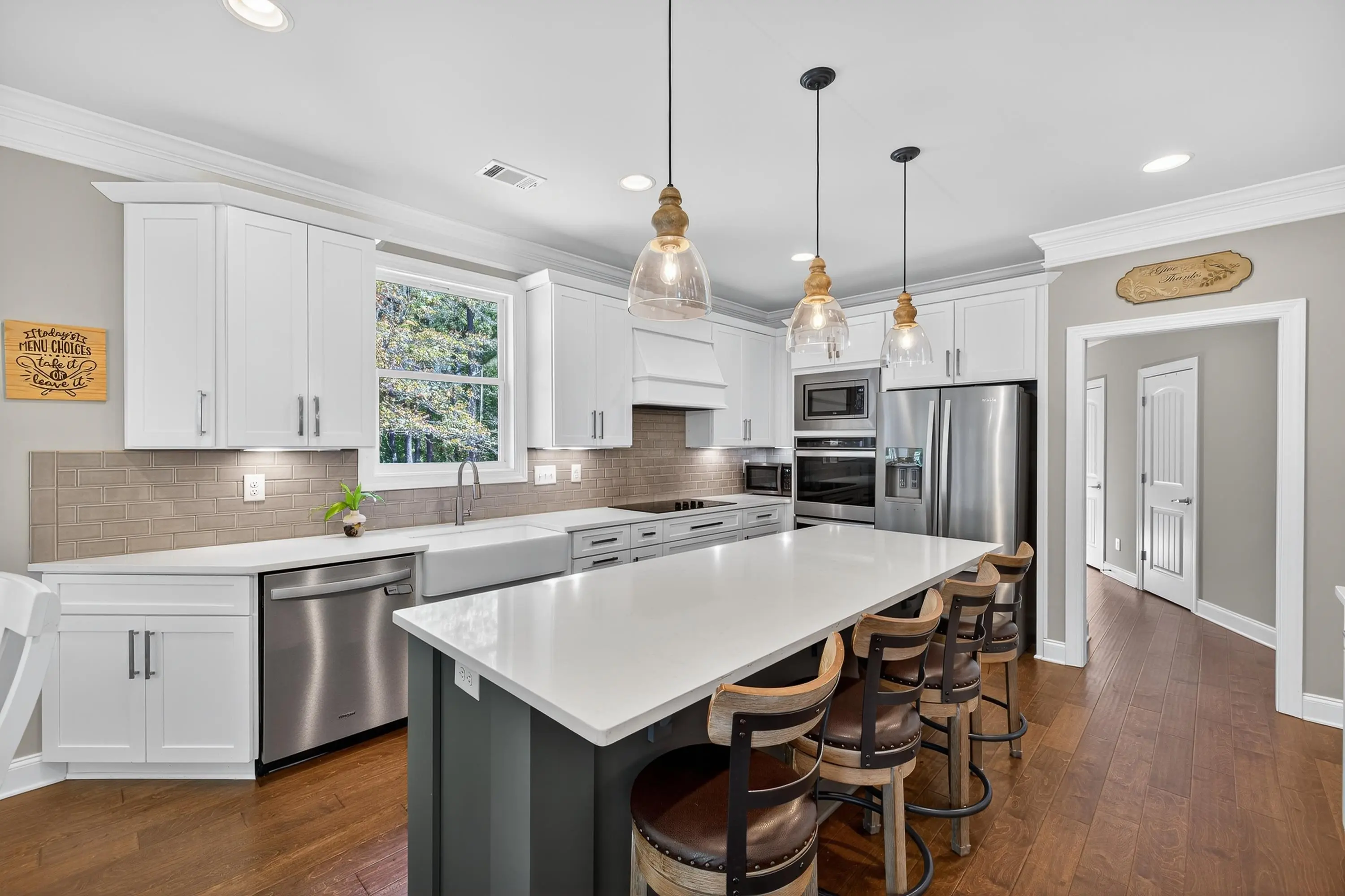 - AppliancesBuilt in Microwave, Cook Top, Dishwasher, Double Ovens, Dryer, Refrigerator, Vent Hood, StainlessSteel Appliances