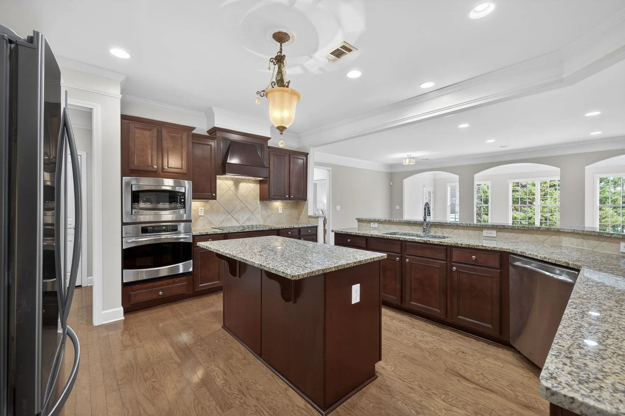 - AppliancesBuilt in Microwave, Cook Top, Dishwasher, Garbage Disposal, Refrigerator, Vent Hood, Wall Oven, StainlessSteel Appliances
