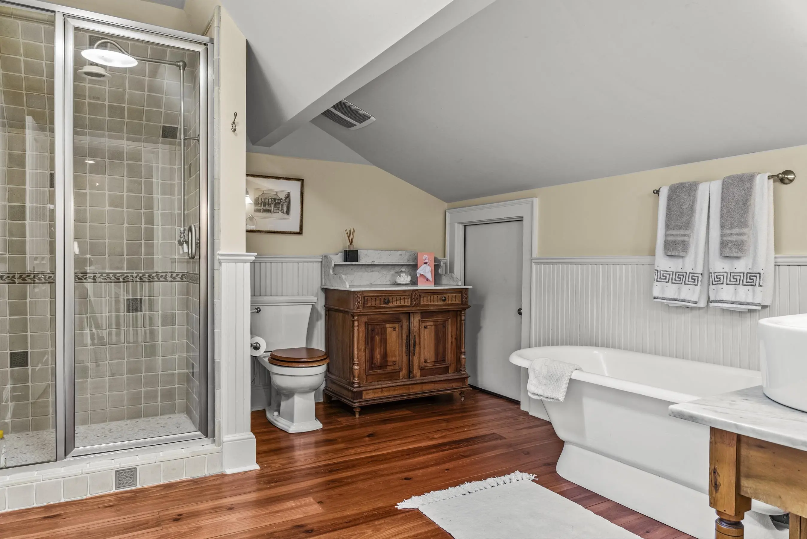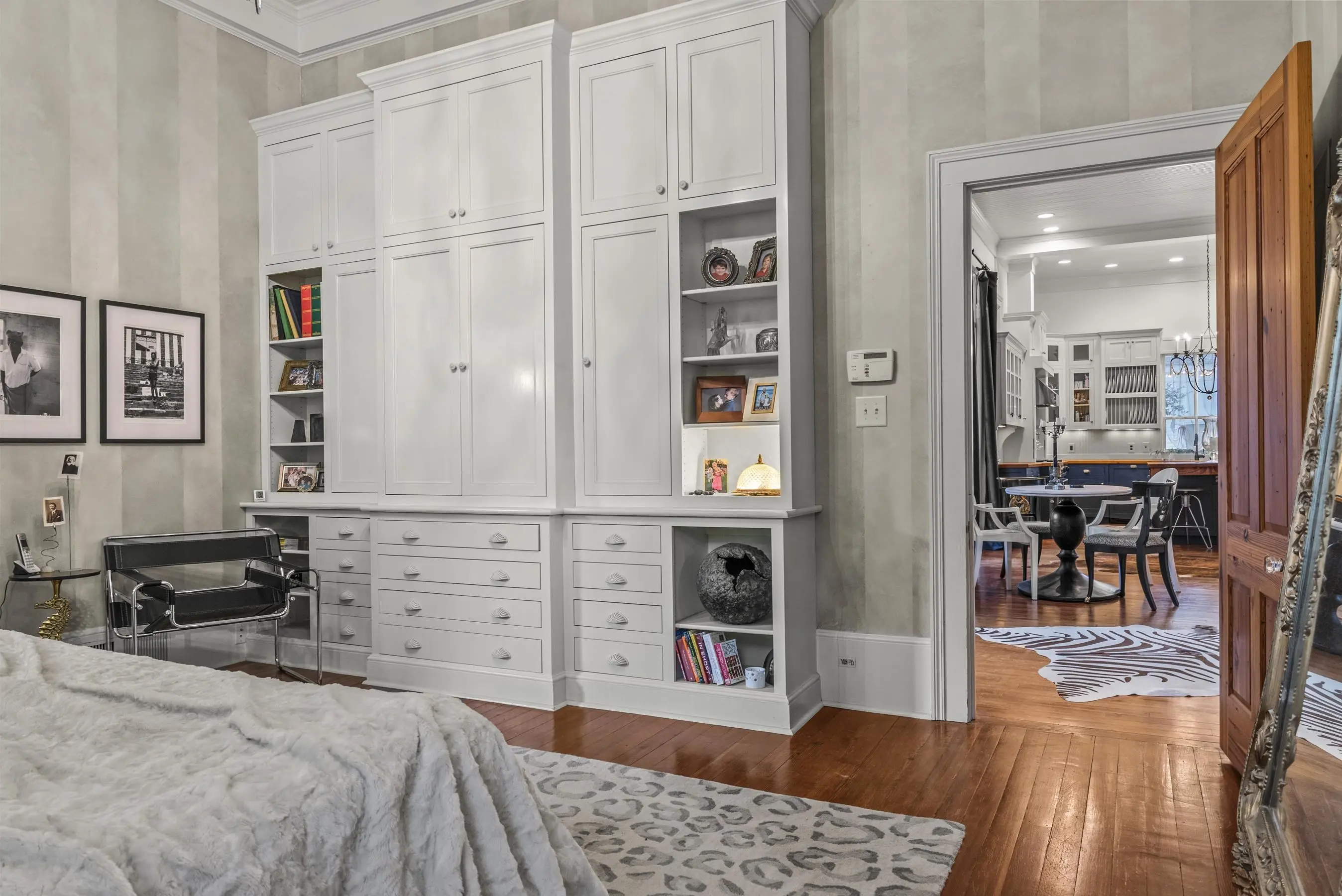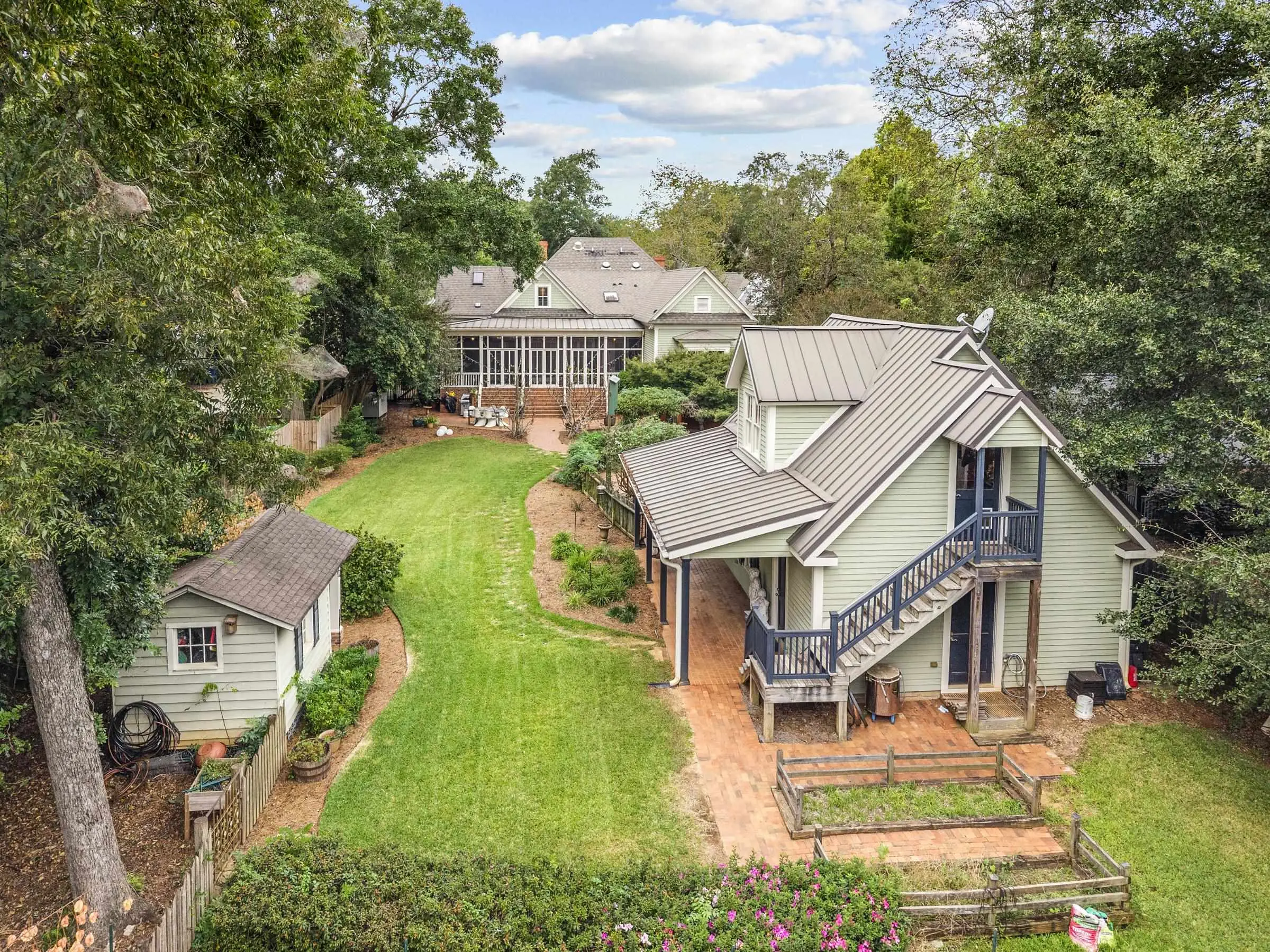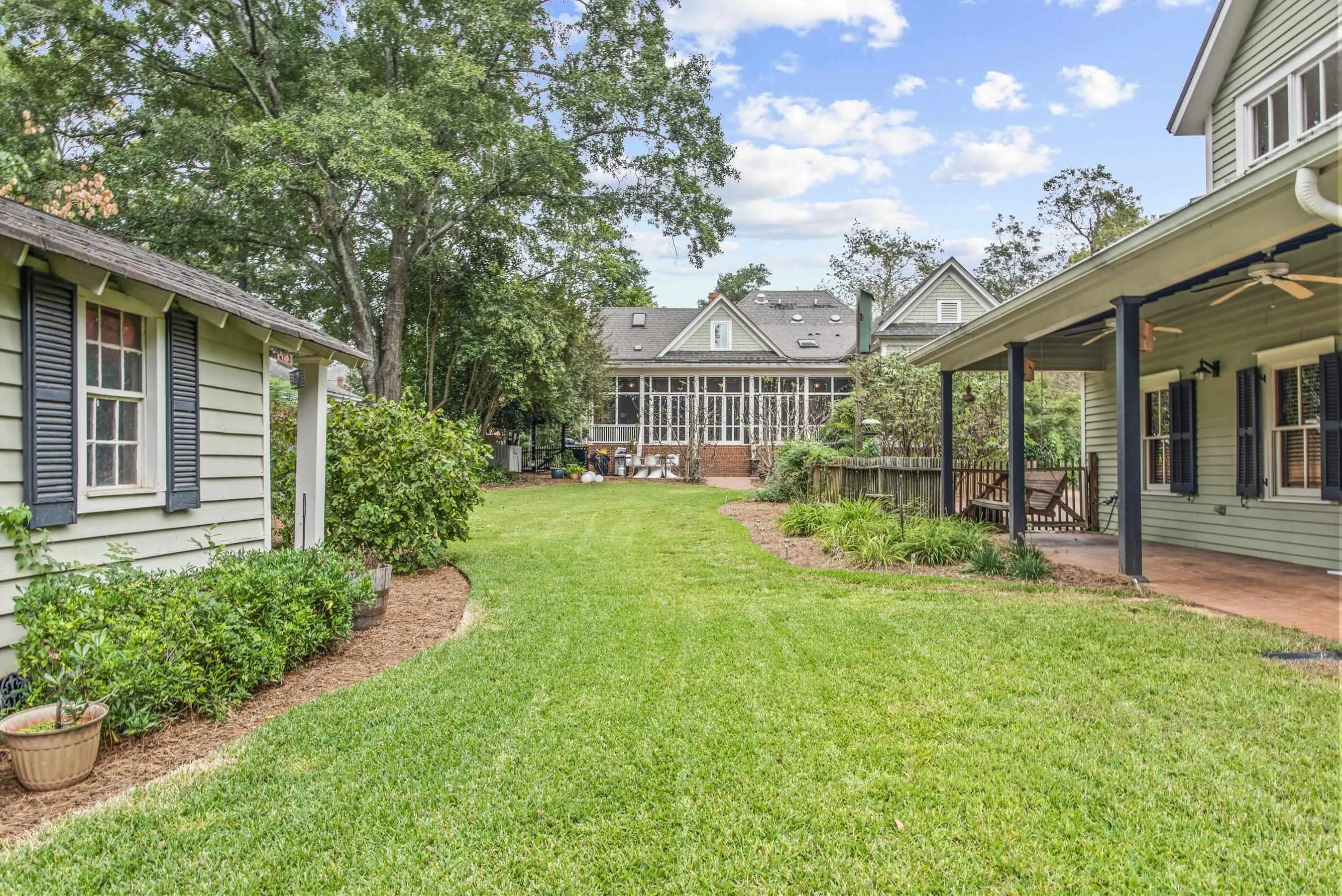 Tucked just a short stroll from the heart of downtown Madison, this timeless home blends historic charm with thoughtfully curated luxury. Imagine starting your mornings on the large front porch, coffee in hand, then wandering into town for brunch at The Dining Room, Ricardo's Kouzzina, or a quick bite at Town 220. You're perfectly positioned to enjoy everything this picturesque town has to offer. A whole house generator and many other upgrades have been added that sets this home apart! Inside, warmth and character greet you at every turn. Rich wood flooring runs throughout the home, complemented by wood-slatted ceilings in the living areas and four gas fireplaces that create the coziest atmosphere year-round. Built-in bookcases line the central hallway, with additional custom cabinetry and cupboards throughout the downstairs living spaces. Chandeliers add a soft glow overhead, while new wall finishes keep the spaces feeling fresh and refined. The kitchen is truly the heart of the home, featuring custom cabinetry, a generous island perfect for gathering, and top-of-the-line appliances including Sub-Zero, Viking, Fisher + Paykel, and Thermador. A Kohler water filtration system and built-in icemaker are integrated into the kitchen as well. High-end fixtures continue into the bathrooms with brands like Waterworks, Toto, Victoria + Albert, and Kohler. The primary suite feels like a private retreat, complete with heated marble floors in the ensuite bath as well as a smart Toto toilet, and built-in cabinetry for ideal organization. Upstairs, you'll find a built-in desk and storage, along with a newly installed heating system for comfort and efficiency. The attractive staircase connecting the levels adds to the home's classic character. Outdoor living here is just as inviting. A wonderful screened porch overlooks the back garden, while a brick dining and grilling patio sets the stage for relaxed evenings under the stars. The backyard features a vegetable growing area, beautiful fig trees, blooming wisteria, and even a quaint tool shed. Storage is abundant throughout the property to keep everything organized and protected. The spacious two-car garage includes a large workspace with sink, worktables and a half bath. Above it, a private guest suite with a full bath offers flexibility for guests, rental income, or a creative retreat. This is more than a home - it's a lifestyle rooted in charm, walkability, and easy living in one of Georgia's most beloved small towns.
