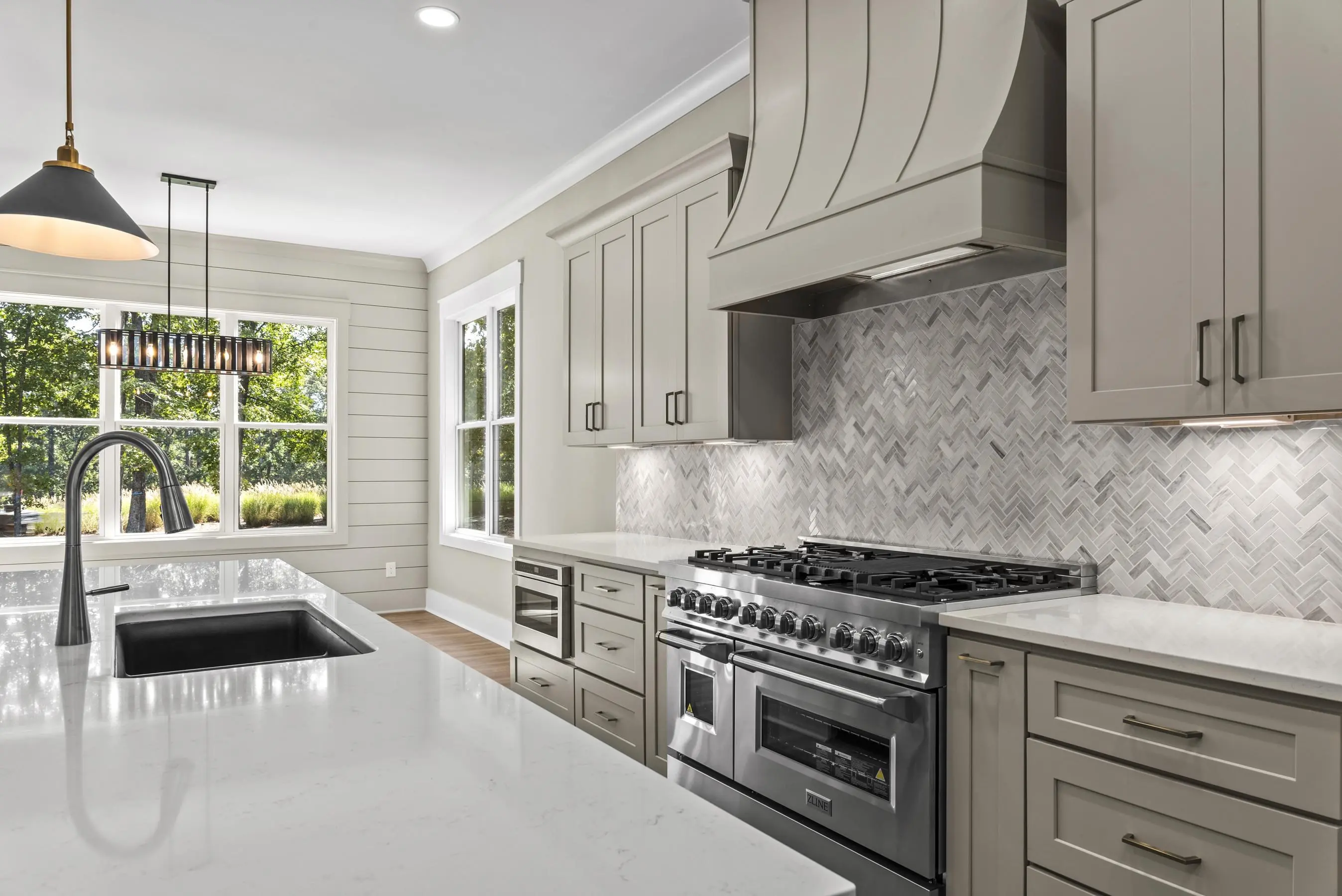 - AppliancesBuilt in Microwave, Dishwasher, Range, Vent Hood, StainlessSteel Appliances