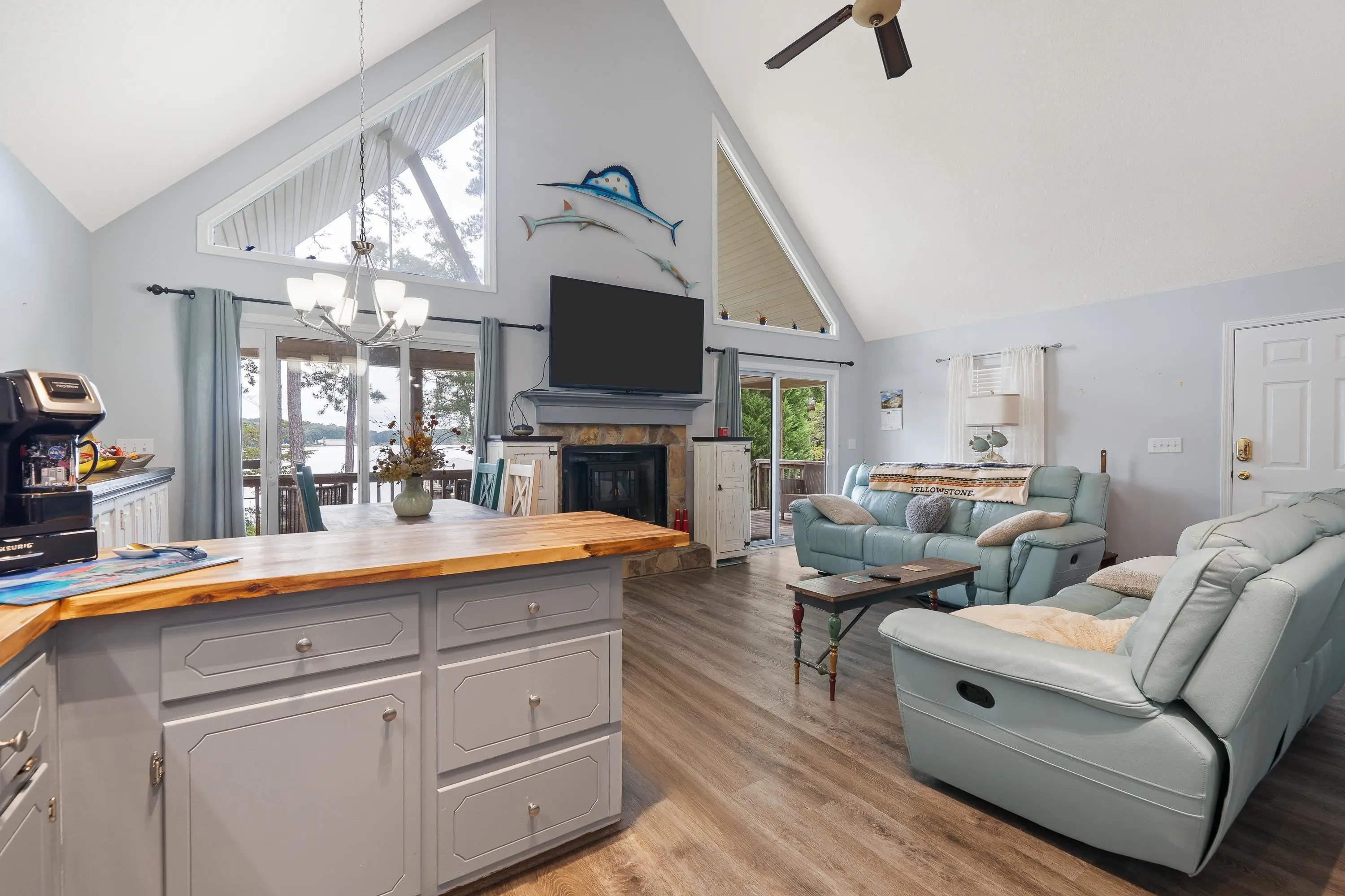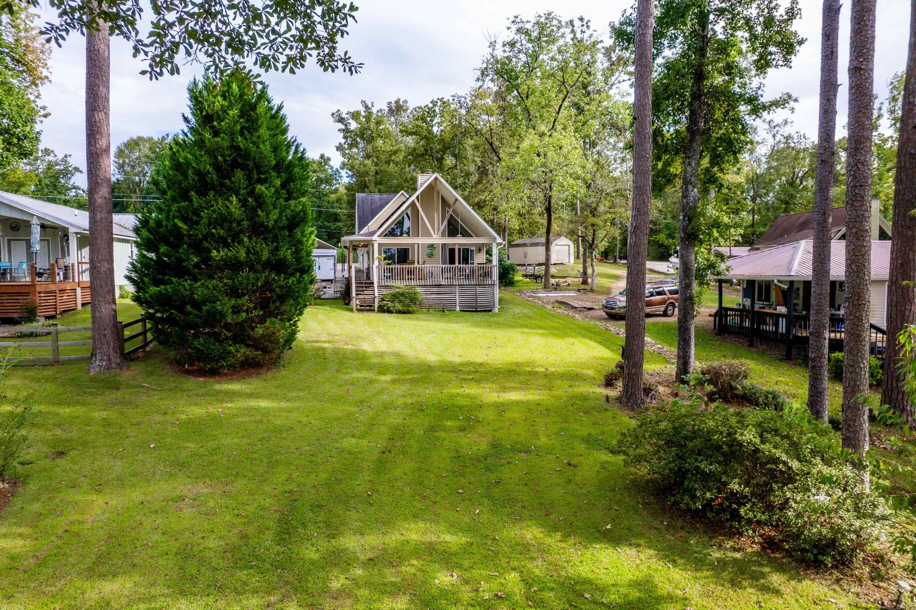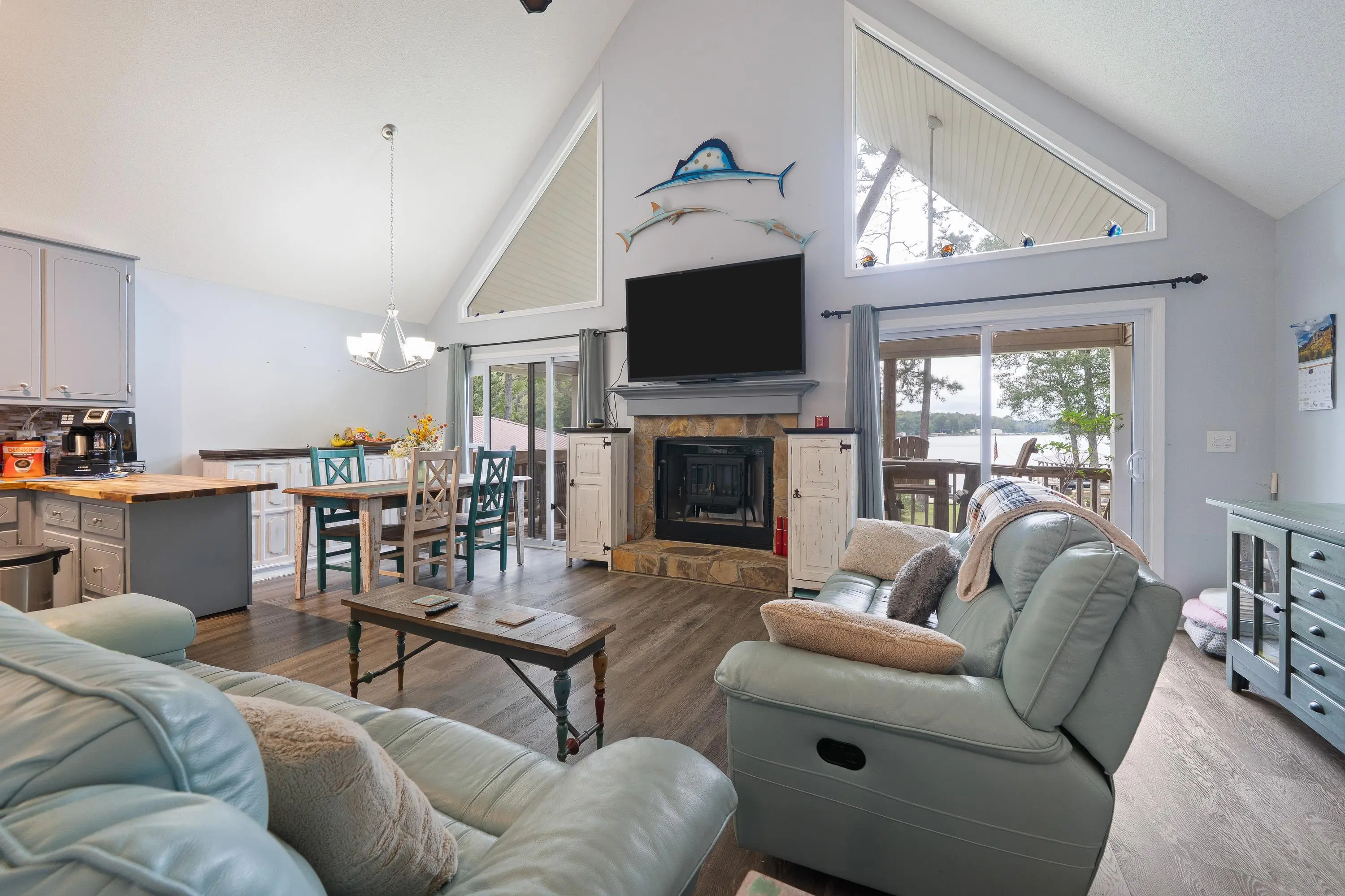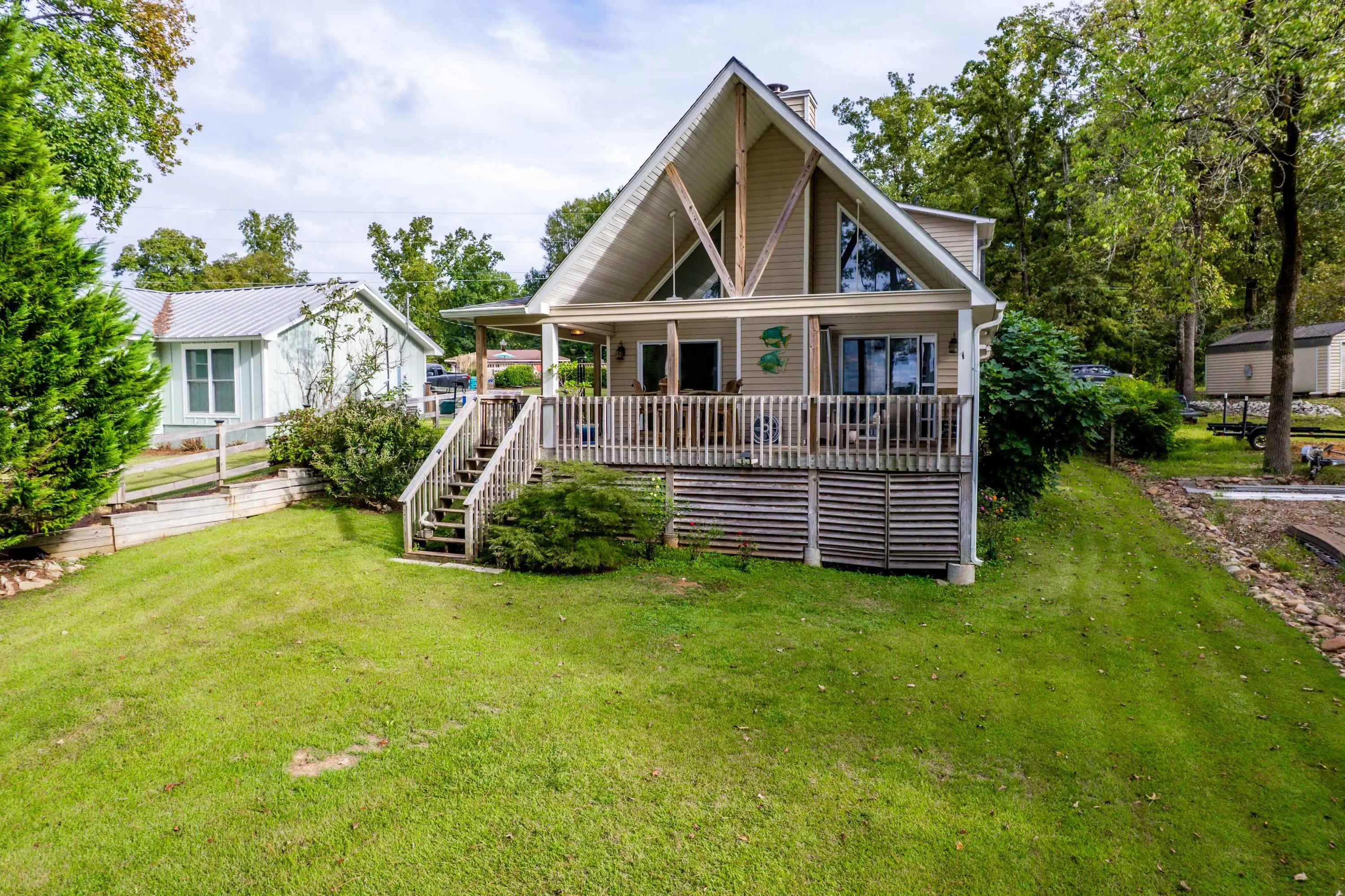Welcome to 325A Shelton Drive â a stunning lakefront A-frame retreat located on beautiful Lake Sinclair in the desirable Little River Heights community. This 3-bedroom, 2-bath home offers 1,840 square feet of light-filled living space, combining rustic charm with modern comfort. Enjoy breathtaking lake views from the open-concept living and dining areas, complete with vaulted ceilings, expansive windows, and a cozy fireplace. The kitchen features modern appliances, ample cabinetry, and a breakfast bar perfect for casual dining. The main level includes two guest bedrooms and a full bath, while the upper level boasts a private primary suite with a loft area â ideal for an office or additional living space. Step outside to a spacious lakeside deck and private dock, perfect for entertaining, relaxing, or launching your boat. Additional features include a detached garage with an upstairs loft that could easily be converted to additional living space and a level lot with mature landscaping. This move-in ready lake home is ideal as a primary residence, weekend getaway, or vacation rental investment. Don't miss your opportunity to call this one home!