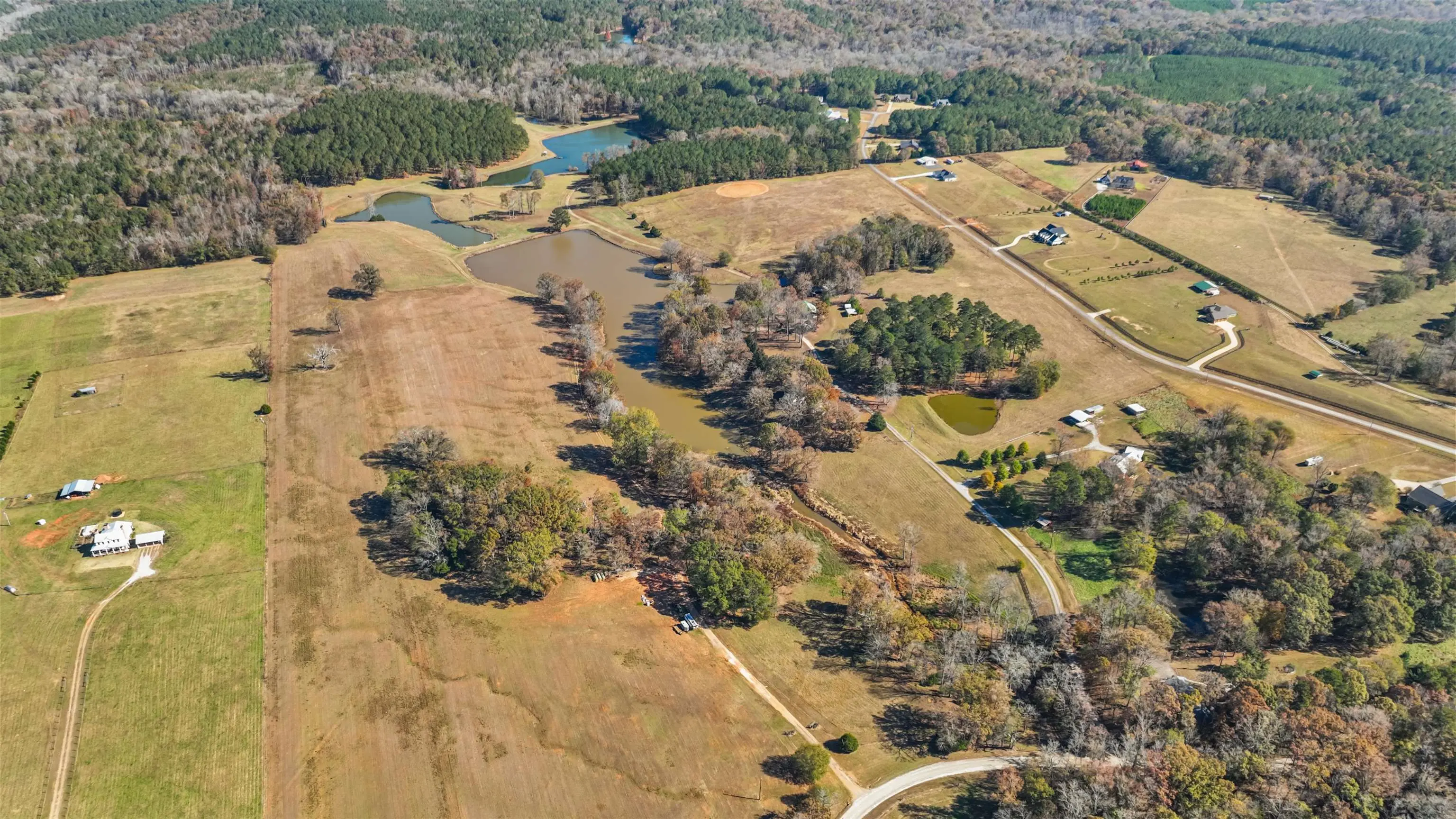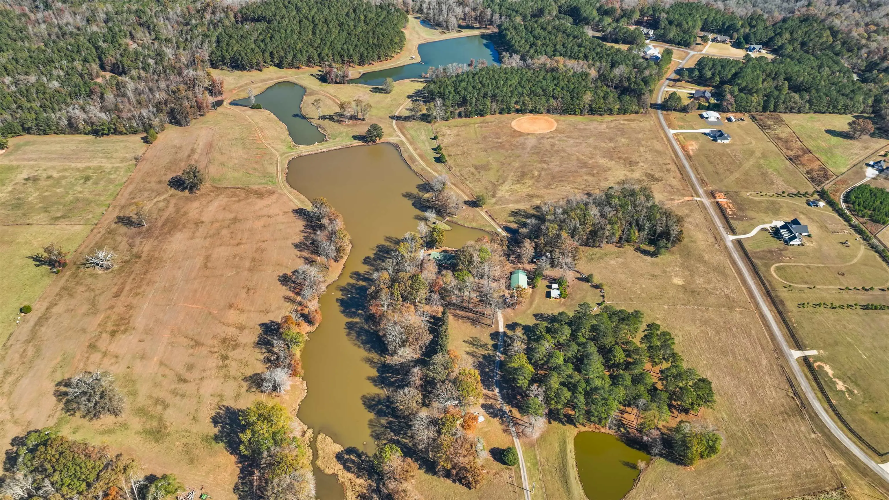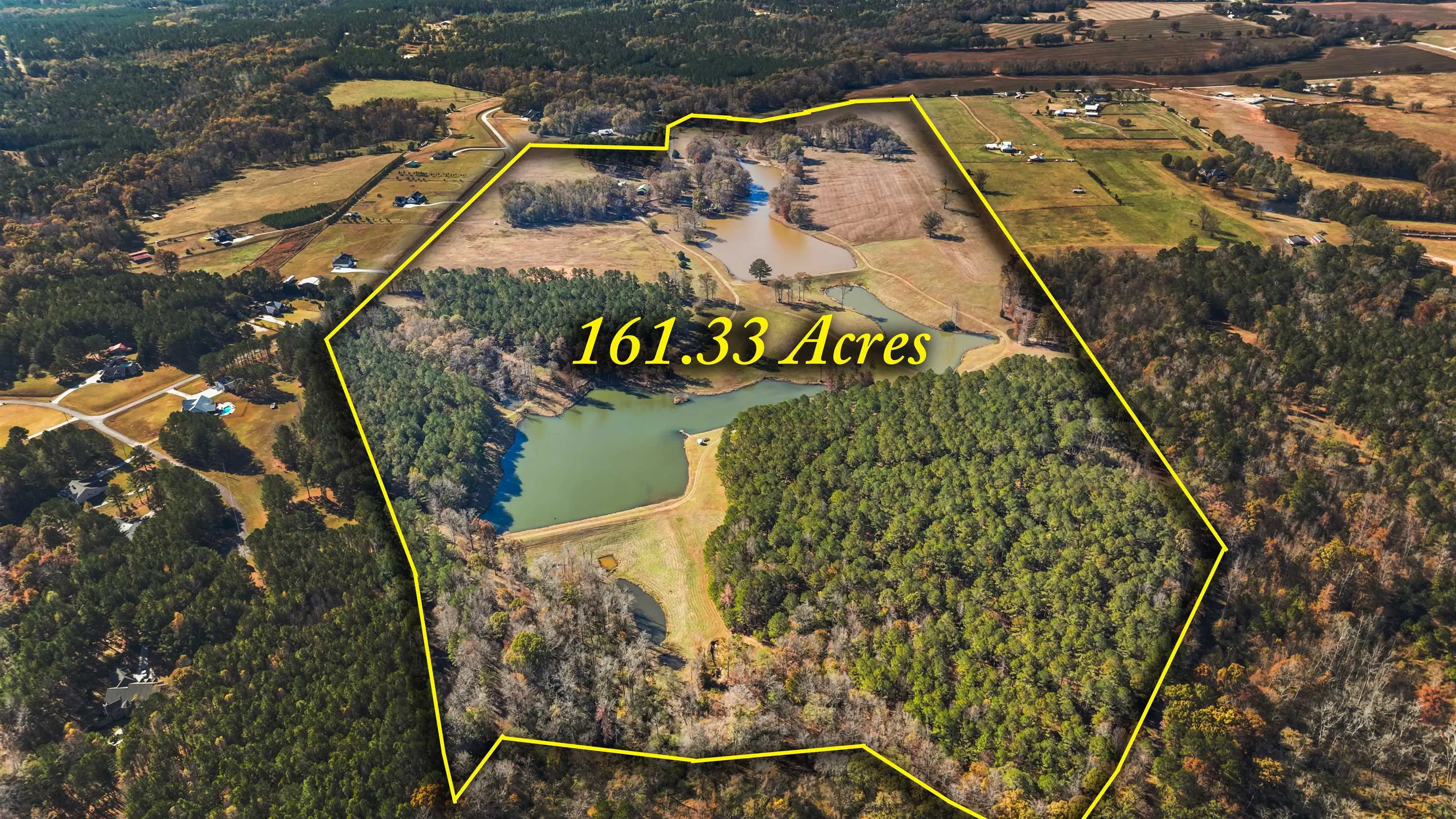 Welcome to one of the most extraordinary land offerings in the Piedmont region of Georgia. A breathtaking 161+/- acre estate in Morgan County, GA that is truly in a class of its own. This remarkable property features an impressive 18.5+/- acres of ponds, including a stunning 9+/- acre lake, a 6+/- acre lake, a 2+/- acre pond, and several additional smaller ponds thoughtfully positioned throughout the landscape. The ponds have been well managed for fishing, creating exceptional opportunities for trophy bass and year-round recreation. Scenic homesites overlook the water, offering the perfect backdrop for a private estate or multiple residences. The land is beautifully balanced with 90+/- acres of open pasture and prime homesites, ideal for equestrian use, cattle, hay production, or immediate or future development. Complementing the open ground are 52.8+/- acres of mature pine and hardwood timber, providing natural beauty, wildlife habitat and investment value. Adding to its character and recreational appeal, the property boasts 1,224 feet of frontage on Big Indian Creek, delivering a peaceful, flowing-water feature that enhances wildlife habitat and outdoor enjoyment. Access and development potential are exceptional, with over 1,100 feet of frontage on Walker Road and more than 1,400 feet along Lawrence Drive, offering flexibility for subdivision, multiple entrances, or a private gated estate. Residential Improvements and Structures. The property is improved with two homes and multiple outbuildings, adding immediate functionality and flexibility. Primary Residence (Built in 2004) 2,620 heated square feet, 2 bedrooms, 2 bathrooms on the main level, Full unfinished basement offering expansion potential, 2 Car Attached Garage and 2 Car Detached Garage. This well-built home provides comfortable living with room to grow, making it ideal as a primary residence, weekend retreat, or lodge. Second Residence (Built in 1985) 1,457 heated square feet, 2 bedrooms, 1 bathroom, 2 Car Detached Garage. Perfect as a guest house, rental opportunity, caretakerâs home, or multi-generational living option. Opportunities of this caliber in Morgan County are exceedingly rare. With its unmatched combination of water features, pastureland, timber, road access, immediate or long-term development investment versatility, this is hands down one of the most unique properties available in the entire State of Georgia. A property like this doesnât just check boxes it creates possibilities.