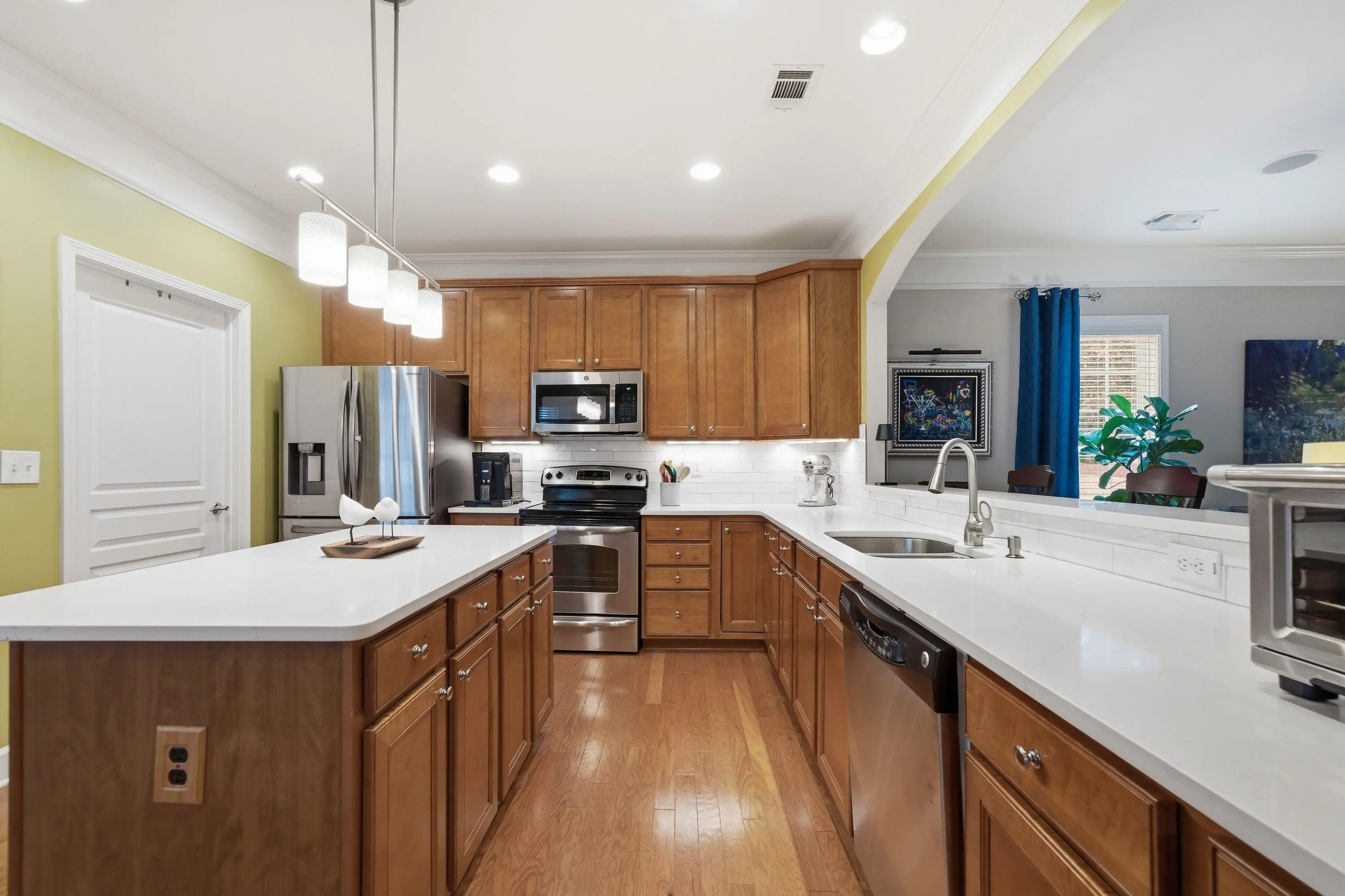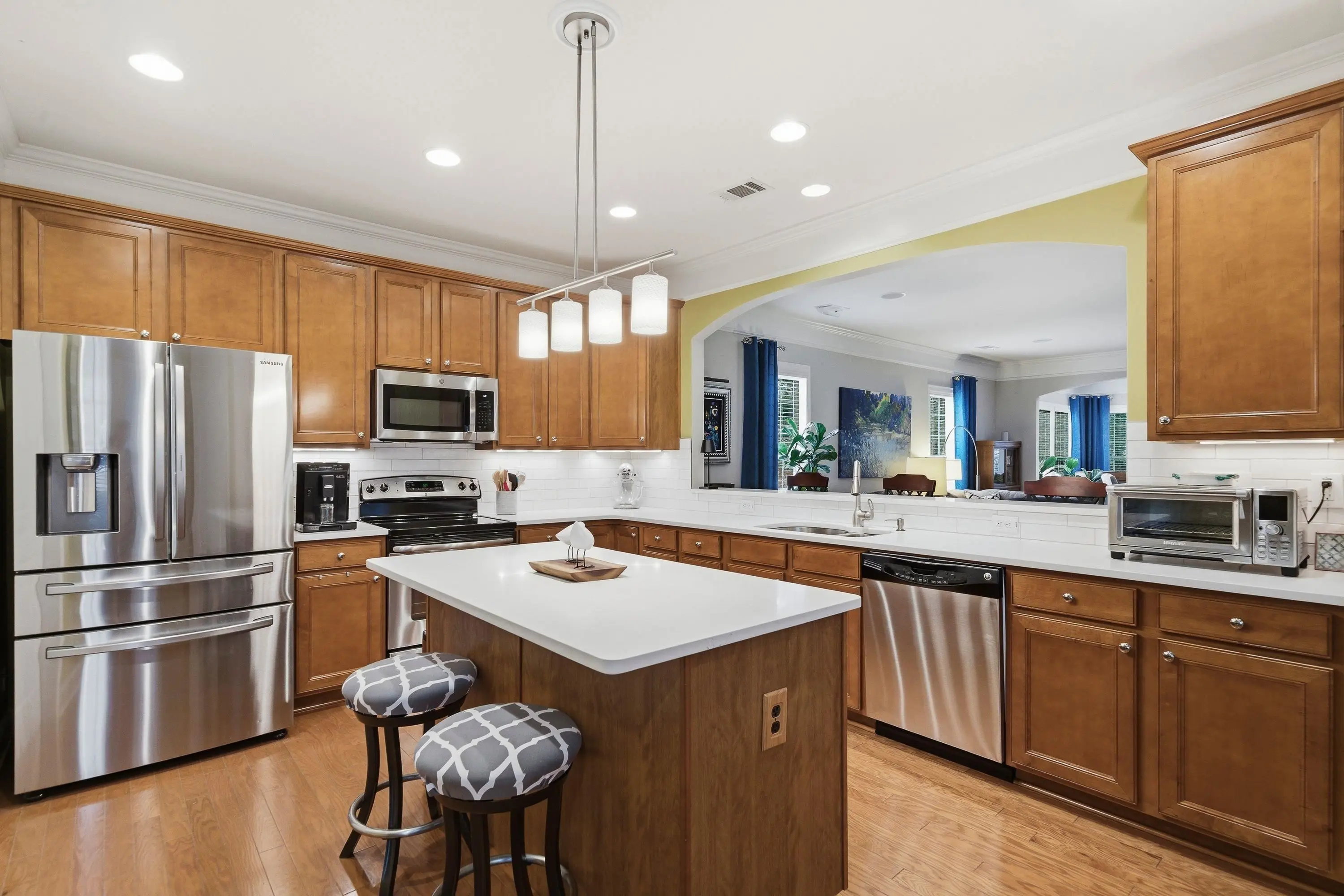 - AppliancesBuilt in Microwave, Dishwasher, Garbage Disposal, Range, StainlessSteel Appliances