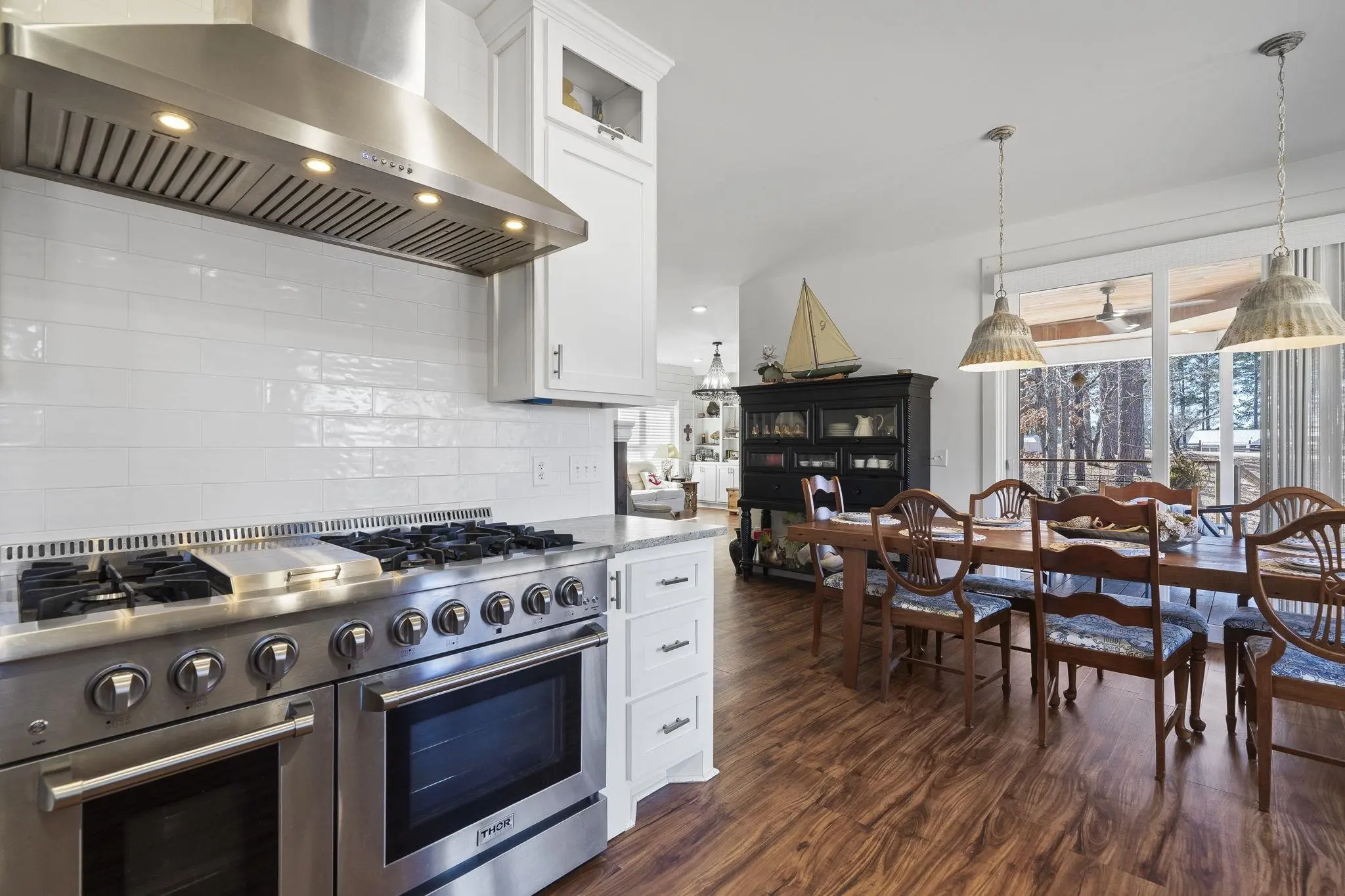 - AppliancesBuilt in Microwave, Dishwasher, Range, Refrigerator, Vent Hood, StainlessSteel Appliances