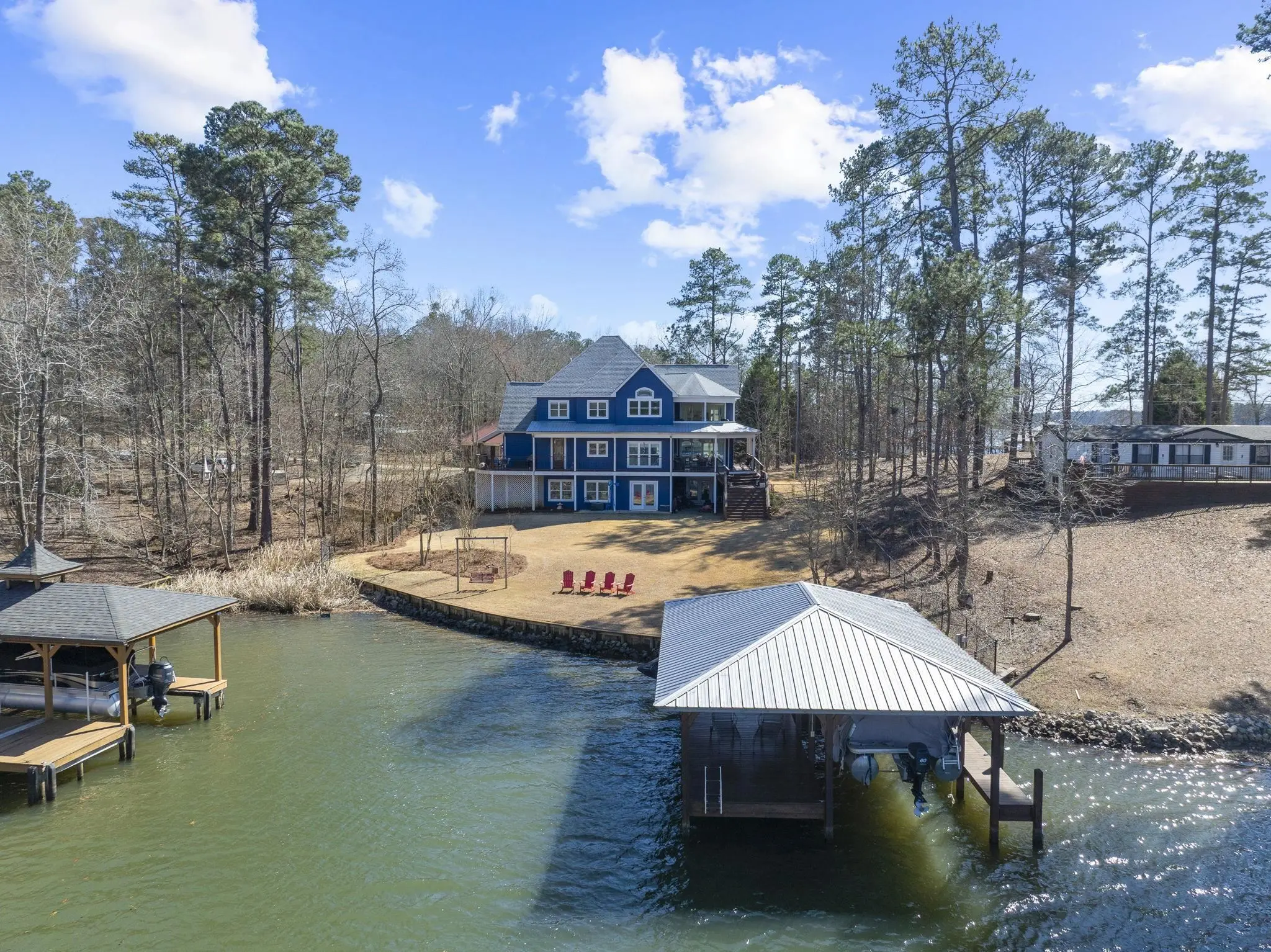 - FeaturesBoat House, Fenced Partially, Lake Pump, Professional Landscaping