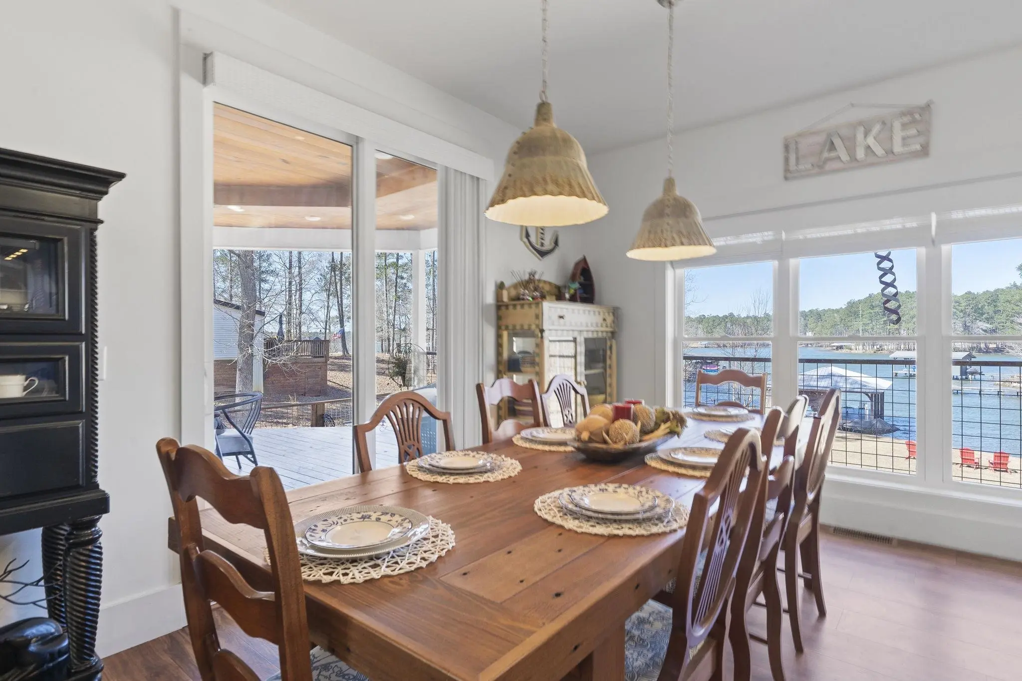 If the lake is calling your name - this is a home you'll definitely LOVE! This custom built home is the absolute lakefront package! Thoughtfully built and has all the upgrades you'd want in your forever lake home! Full house generator, unfinished basement, workshop, 2 car garage, tankless gas water heater, stubbed for an elevator, porch galore, amazing shiplap walls, and it's LIKE NEW! Stunning kitchen with stainless steel appliances, an abundance of cabinetry (with lots of drawers), gas range, built-in microwave and vent hood. Right off of the kitchen & dining area is a cozy living room with a wet bar, gas fireplace and covered back porch. A large laundry room and half bath are quietly tucked away just off the living area. Upstairs, you have 3 bedrooms and two full baths. The master suite is an ABSOLUTE DREAM - here you have a coffee bar in the room & a private porch (if you're dreaming of quiet lake mornings with a cup of coffee, this is the spot), a stunning bathroom with a free-standing tub, walk-in closet and a beautiful tile shower. There's a large loft area with a murphy bed and two additional spacious guest bedrooms and full bath. Also there is plenty of storage space - which is a MUST NEED for a lake home! In the basement level is where you can get creative and add equity! This space is mostly unfinished, has a workshop, room for bedroom, living room and already has a half bathroom! Easy walk down to the single boathouse setup for a pontoon boat and has 5ft of water depth at the end of the dock. This home is super private, has great neighbors, the clearest water on the lake & is absolutely as breathtaking in person as it is in the photos. This is a MUST-SEE! Call today & let's get you SOLD on Sinclair!