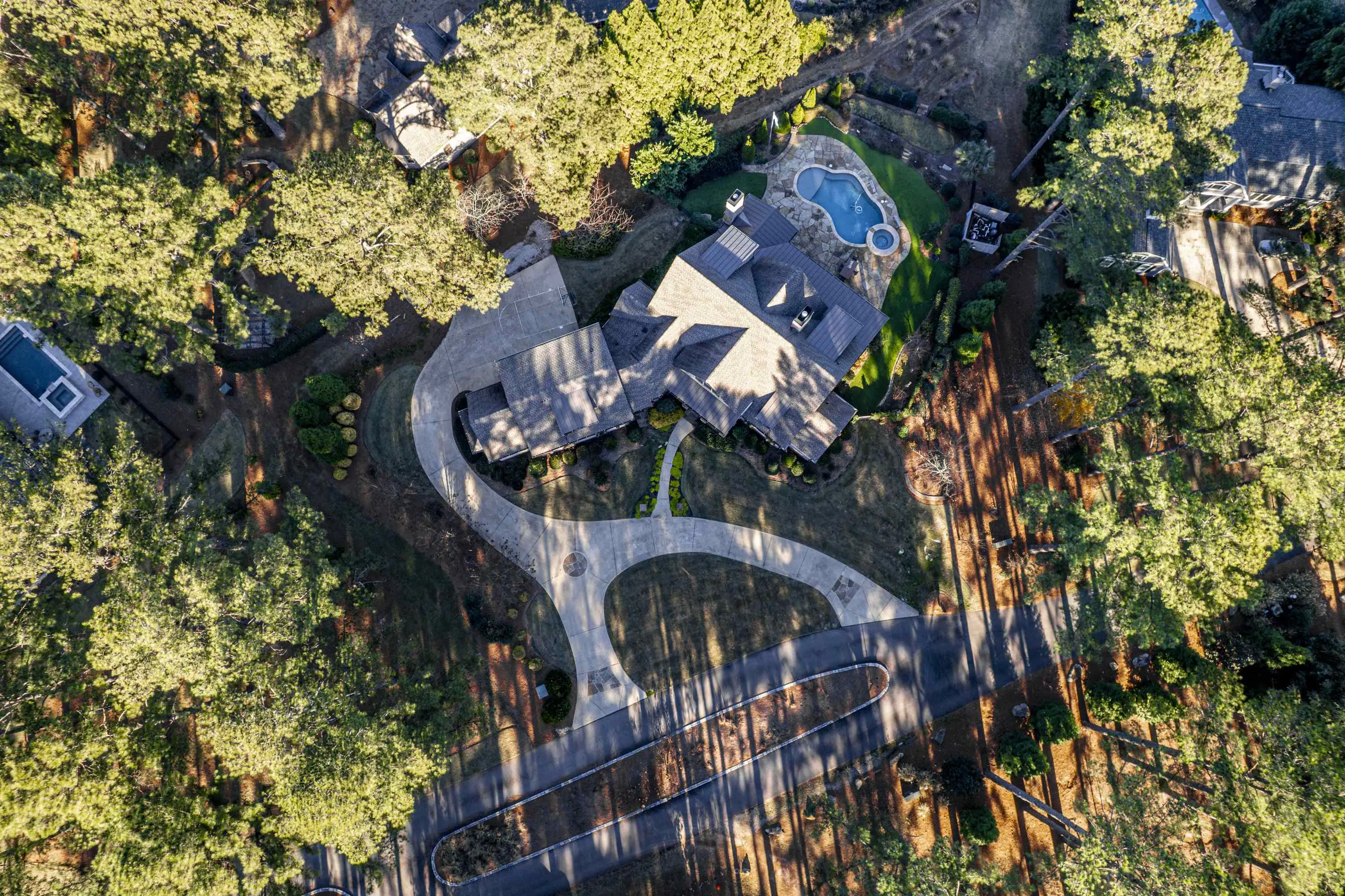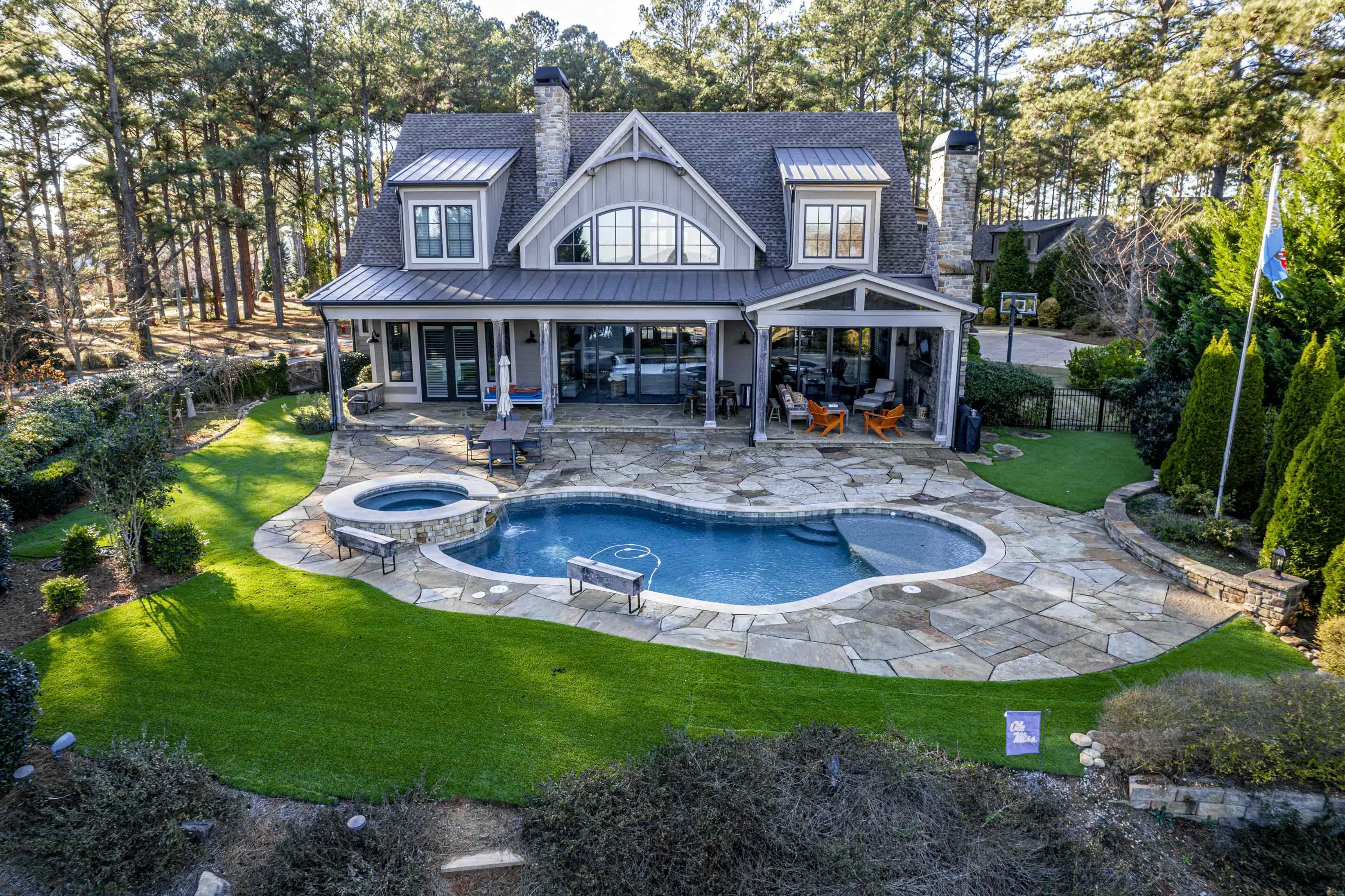 - FeaturesHot Tub, Irrigation System, Paved Driveway, Paved Walkway, Pool, Professional Landscaping, Walkways, Water Features, Outdoor Fireplace