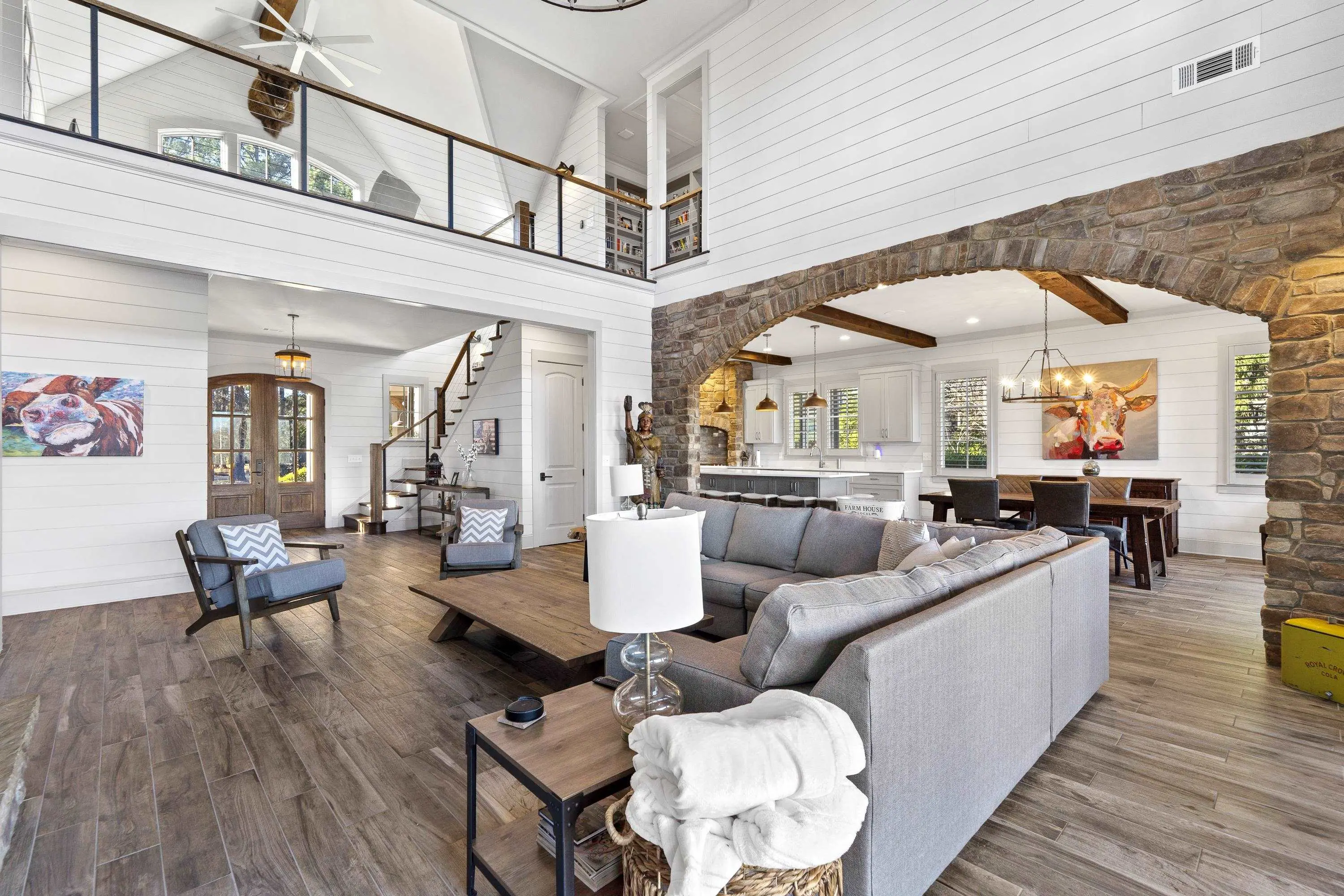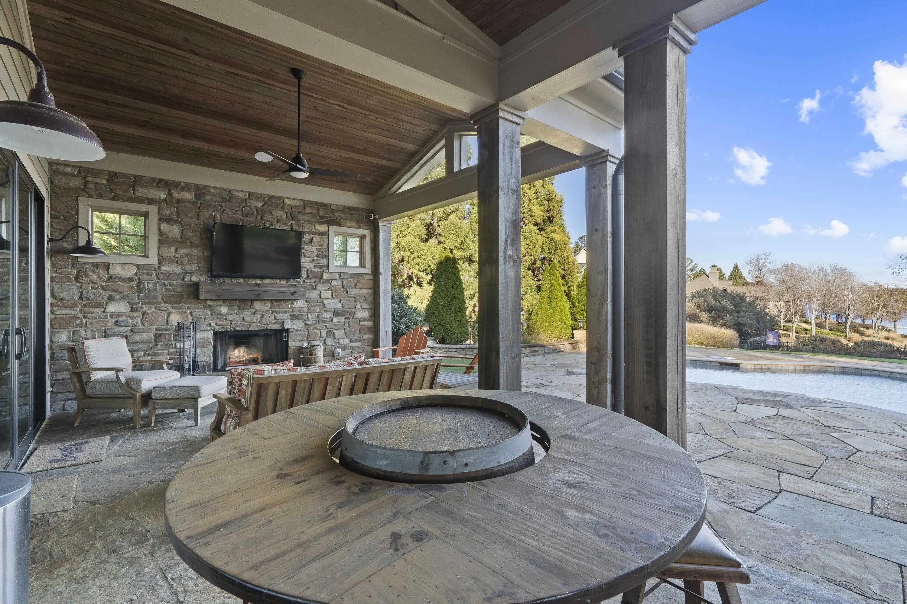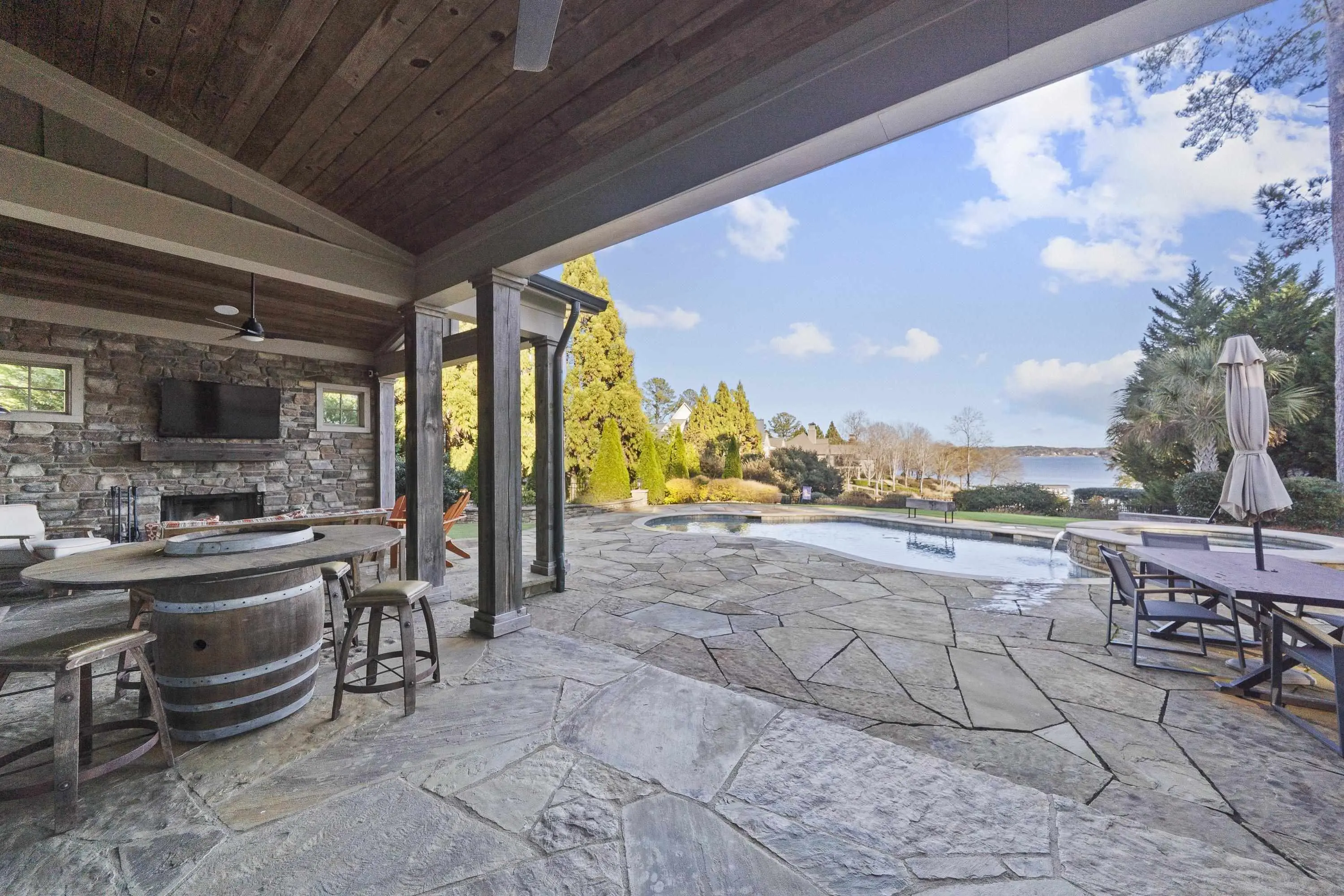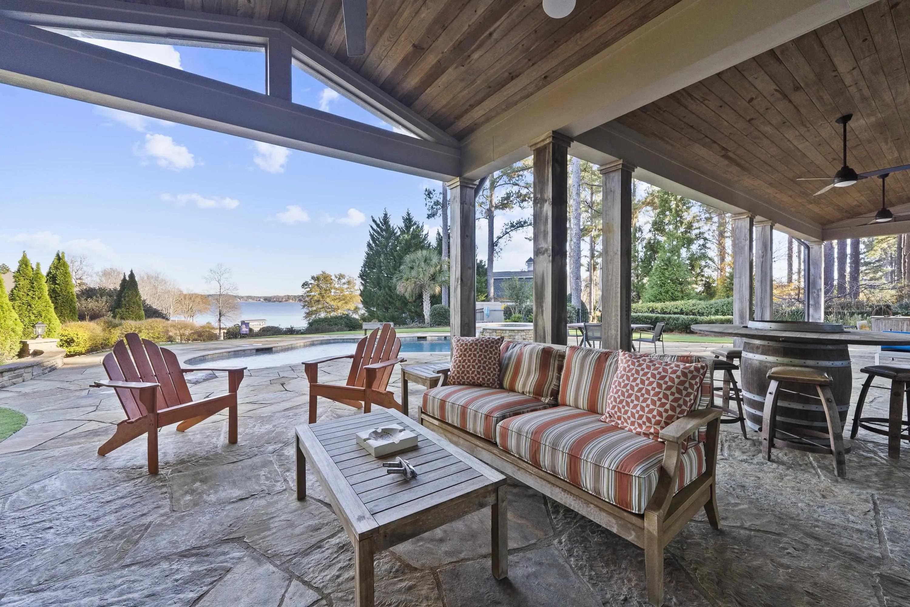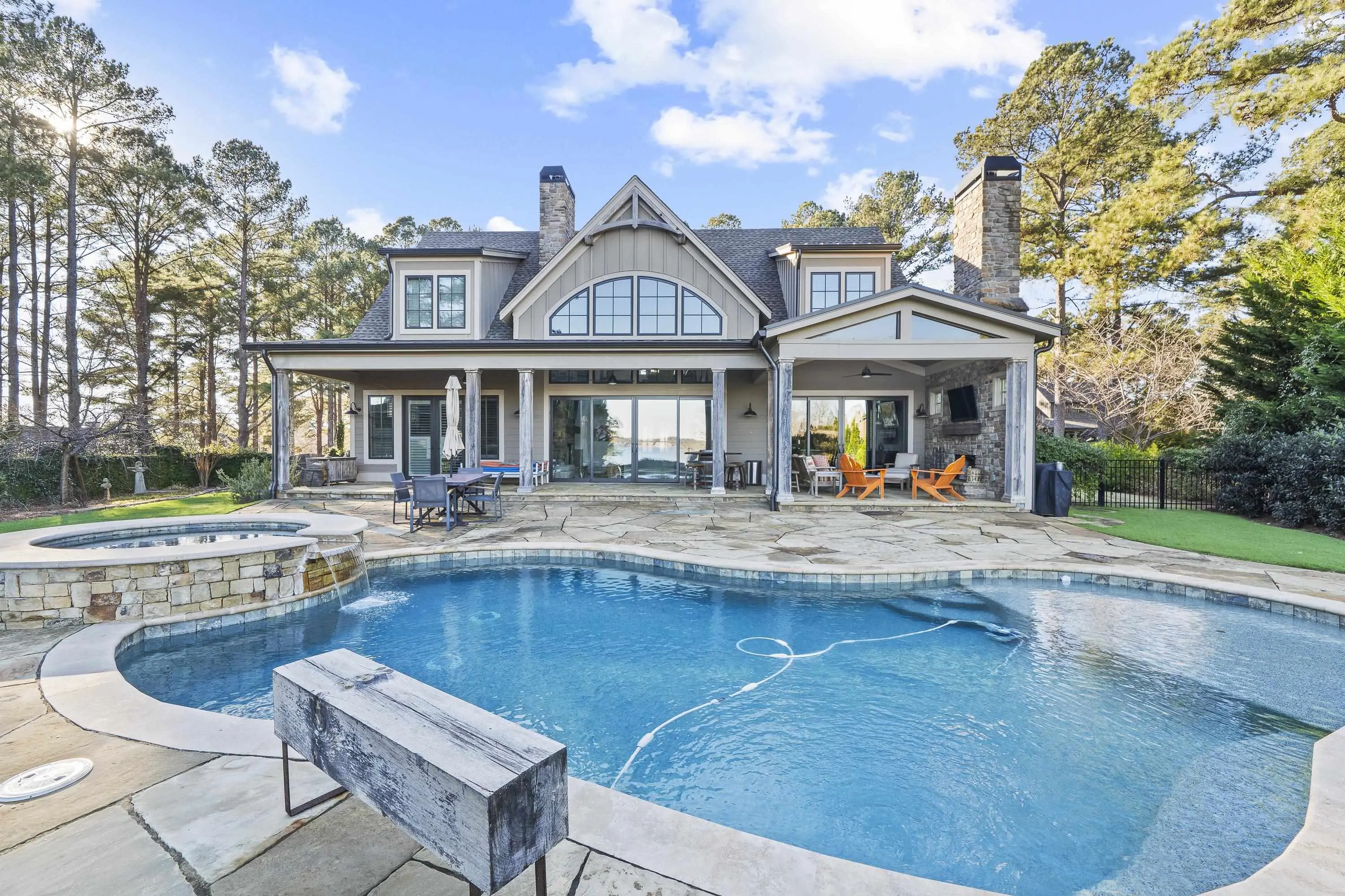 Stunning lakefront retreat in Cuscowilla on Lake Oconee featuring breathtaking main lake views and an assigned boat slip. This immaculate home is offered fully furnishedâincluding the golf cartâand includes a $40,000 Golf Membership credit, making it truly move-in ready. Privately situated on an elevated lot, this home was thoughtfully designed for entertaining. The open-concept floor plan seamlessly connects the chefâs kitchen to the spacious great room and extends to a covered porch with fireplace overlooking the swimming pool, hot tub, and sparkling lake beyond. The dramatic great room showcases a soaring vaulted ceiling, shiplap walls, custom built-ins, and a massive masonry fireplace. The gourmet kitchen is equally impressive with quartz countertops, stainless steel appliances, and beautiful stone accents. The ownerâs suite is conveniently located on the main level and features a spa-inspired bath along with his-and-hers custom closets. Upstairs, youâll find two private ensuite bedrooms and a cozy sitting area overlooking the main living space. Above the garage, an additional bedroom and bath with a Murphy bed provide flexible space for guests. Just a short golf cart ride to the clubhouse and golf practice facilities, this exceptional home offers the best of lake and golf course living in Cuscowilla. Golf or Social Membership opportunities are available.