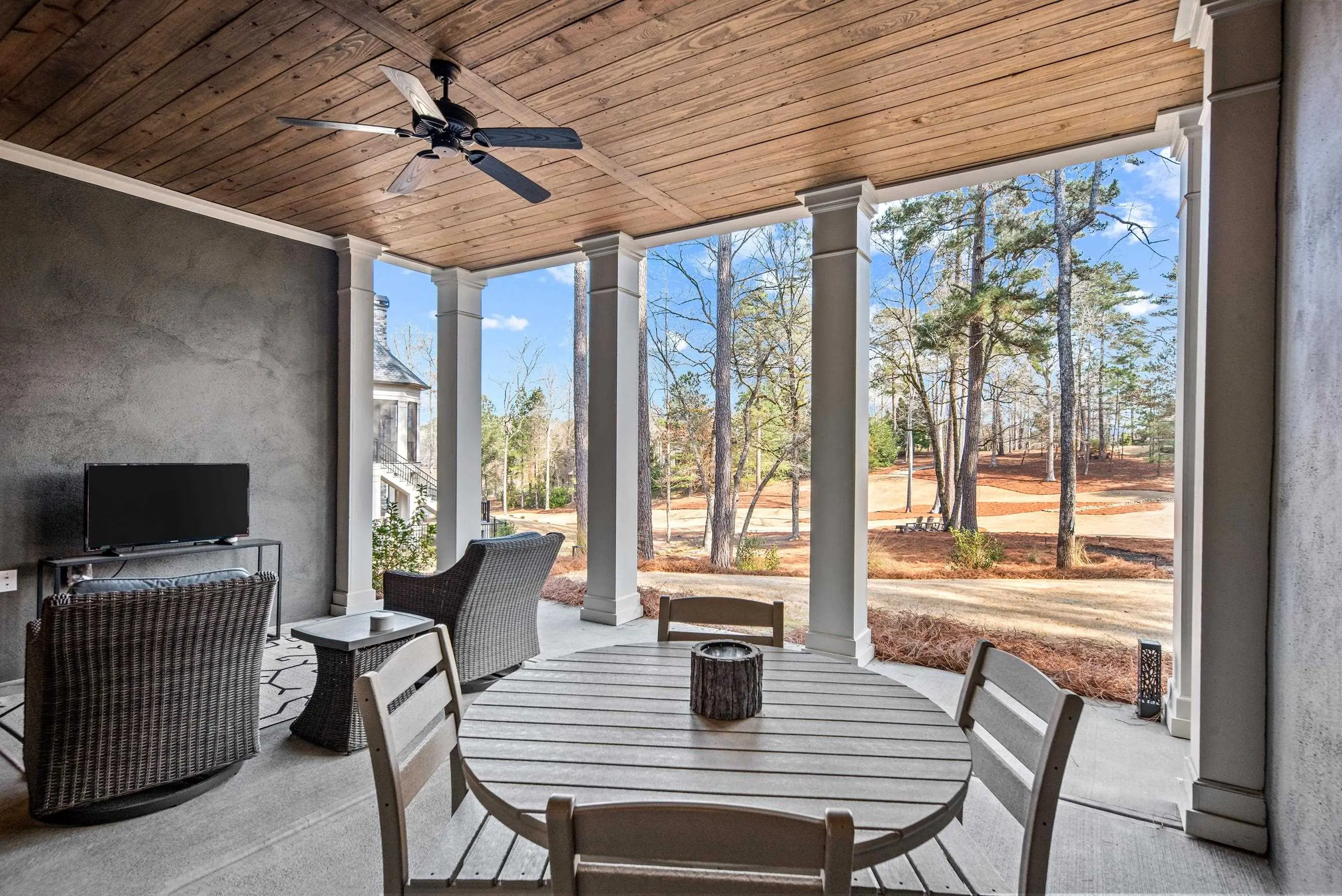 - Exterior FeaturesCovered Deck, Covered Patio, Covered Porch, Screened Porch