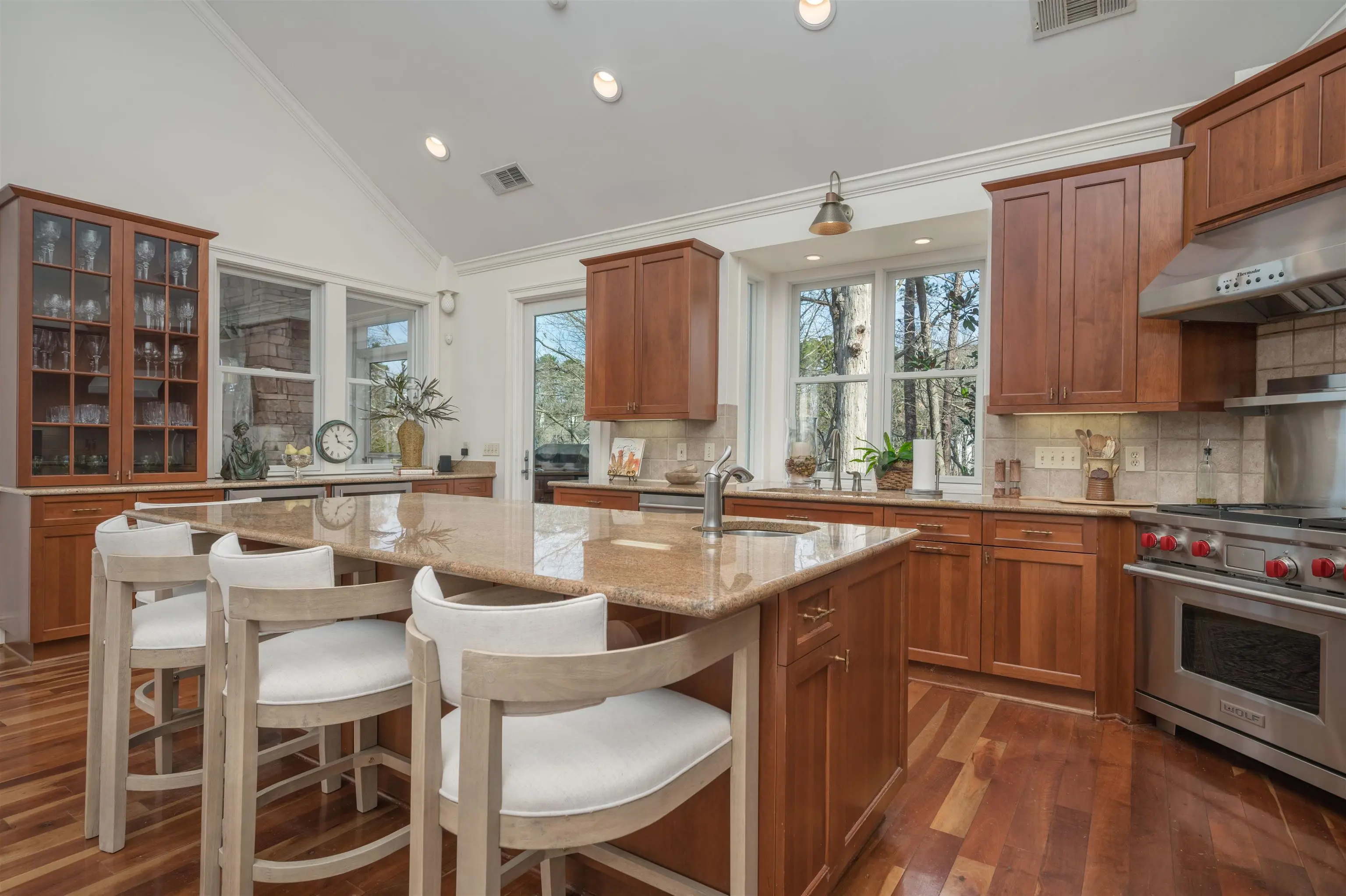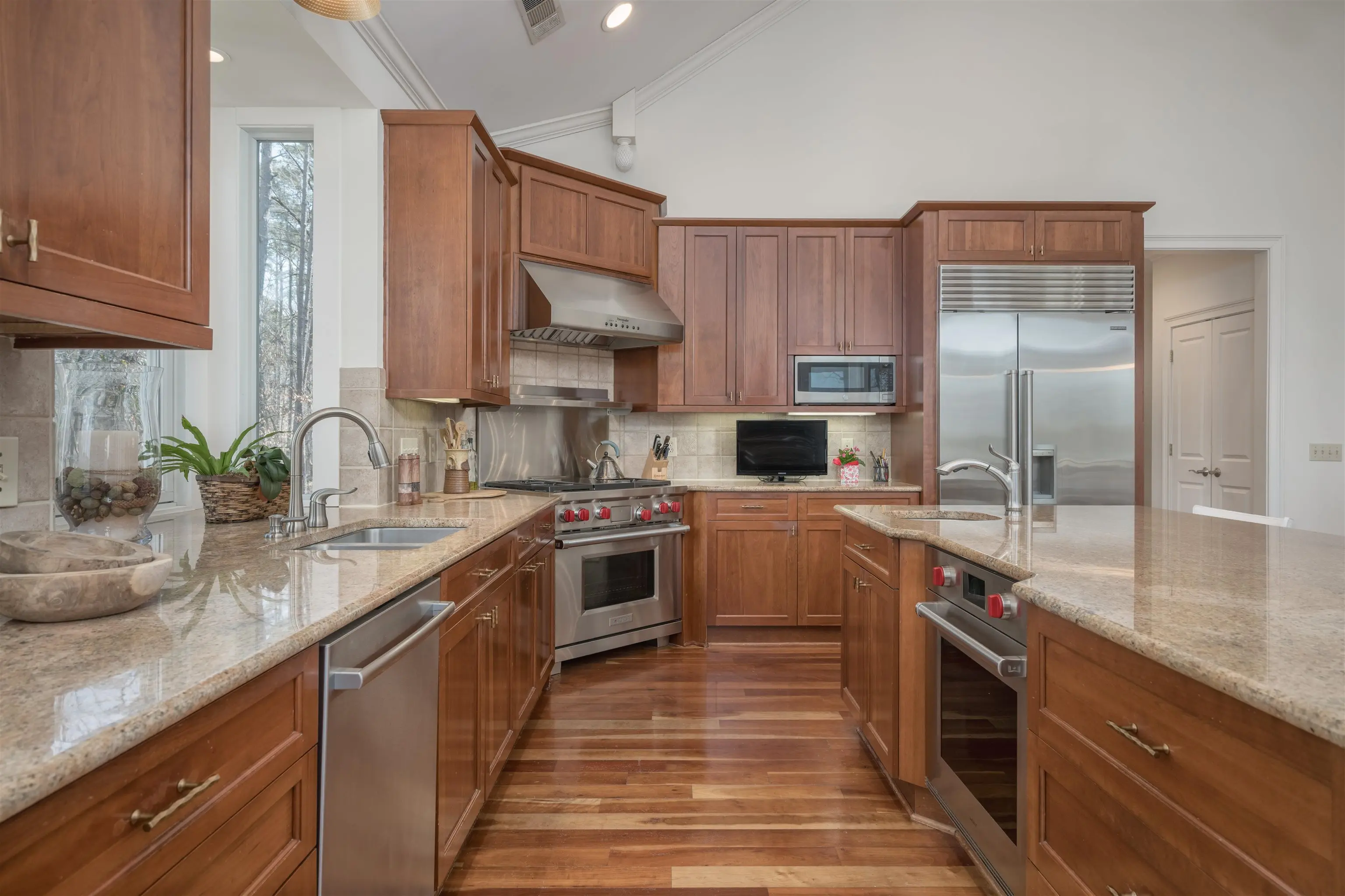 - AppliancesBuilt in Microwave, Dishwasher, Double Ovens, Freezer, Garbage Disposal, Range, Vent Hood, Wine Cooler, StainlessSteel Appliances