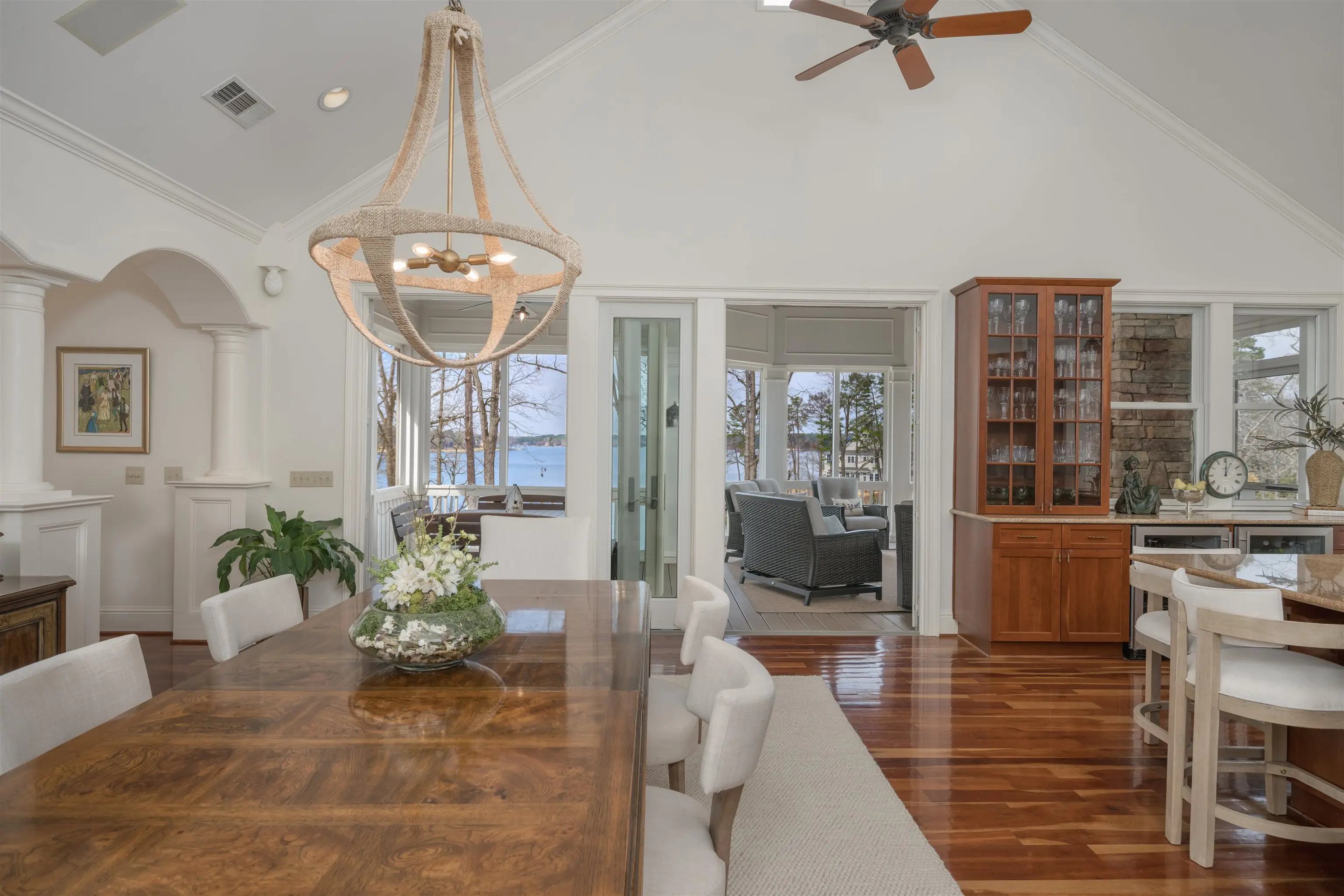 LAKE FRONT LUXURY LIVING AT REYNOLDS LAKE OCONEE! Perfectly positioned on a beautifully private 1.25-acre homesite in the prestigious Davis Ridge area of Reynolds Lake Oconee, this exceptional lakefront retreat offers breathtaking panoramic water views and spectacular westerly sunsets. Thoughtfully designed for both elegant entertaining and relaxed lake living, the residence features six spacious bedrooms and six and a half baths across more than 7,200 square feet of beautifully maintained living space. Walls of windows frame the stunning lake vistas, filling the home with natural light and ensuring that nearly every room enjoys captivating water views. The open and inviting floor plan, showcasing Brazilian cherry flooring, flows effortlessly between living spaces and outdoor gathering areas, creating the perfect setting for hosting family and friends --or enjoying morning coffee or quiet evenings overlooking the lake. The gourmet kitchen is appointed with high-end Wolf and Sub-Zero appliances and generous workspace, seamlessly connecting to the homeâs main living and dining areas. Multiple fireplaces and inviting gathering spaces enhance the homeâs warm, refined character. Outdoor living is equally impressive, with expansive terraces, a beautiful pool and spa overlooking the lake, and peaceful spaces designed to capture the stunning sunset views that define this property. The private setting offers exceptional tranquility while still enjoying all the benefits of lakefront living, including a max dock ideal for boating, and a protective cove for swimming, and fishing. Meticulously maintained by its original owner, this Davis Ridge residence presents a rare opportunity to enjoy luxury lakefront living in one of Reynolds Lake Oconeeâs most desirable locations. Seller is making a Club Membership available for buyer to explore how they can enjoy golf, sporting grounds, tennis, pickleball, fitness, recreational, and culinary amenities befitting of a world-class private club.