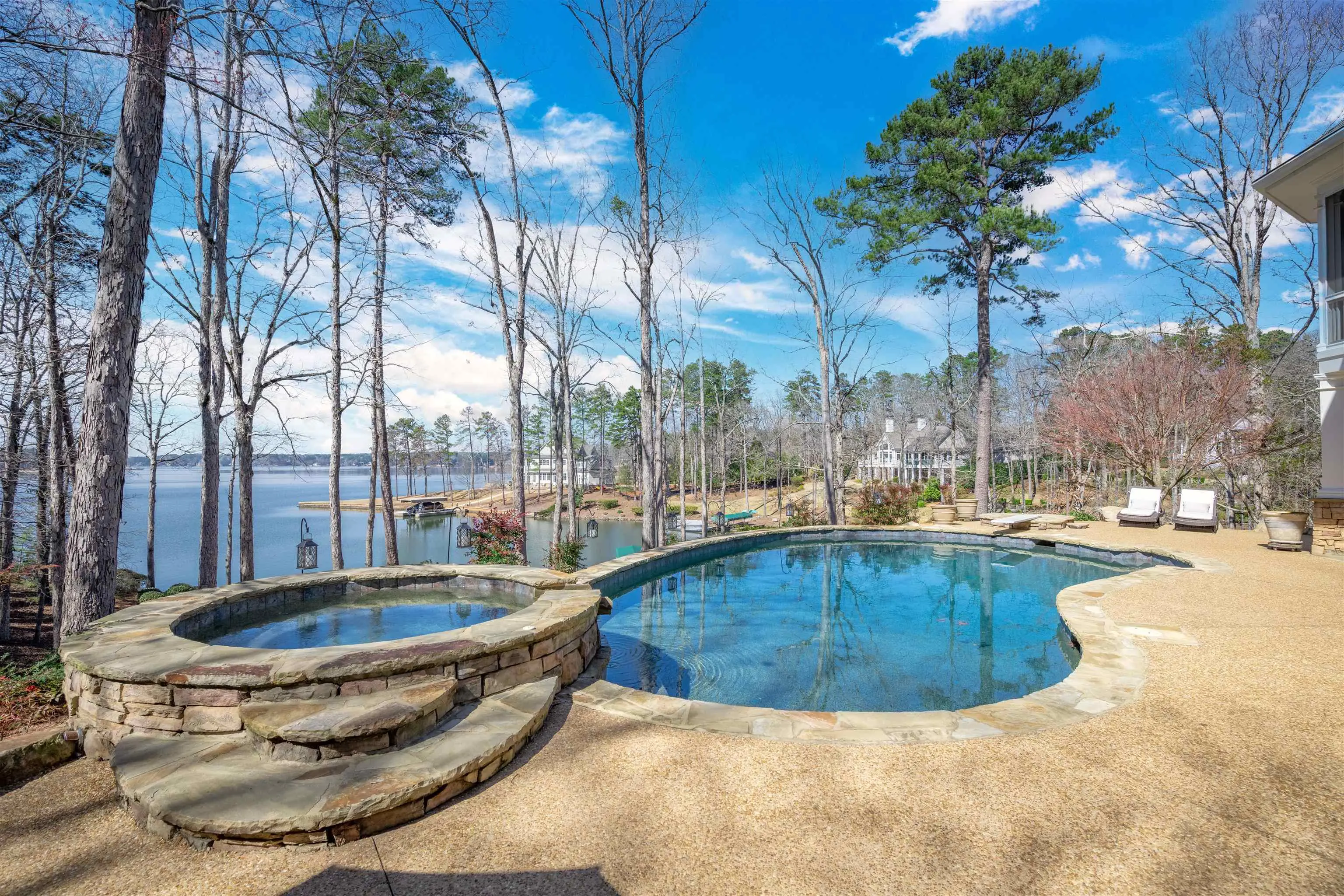 - FeaturesCircular Drive, Hot Tub, Irrigation System, Lake Pump, Paved Driveway, Pool, Professional Landscaping, Walkways, Outdoor Fireplace