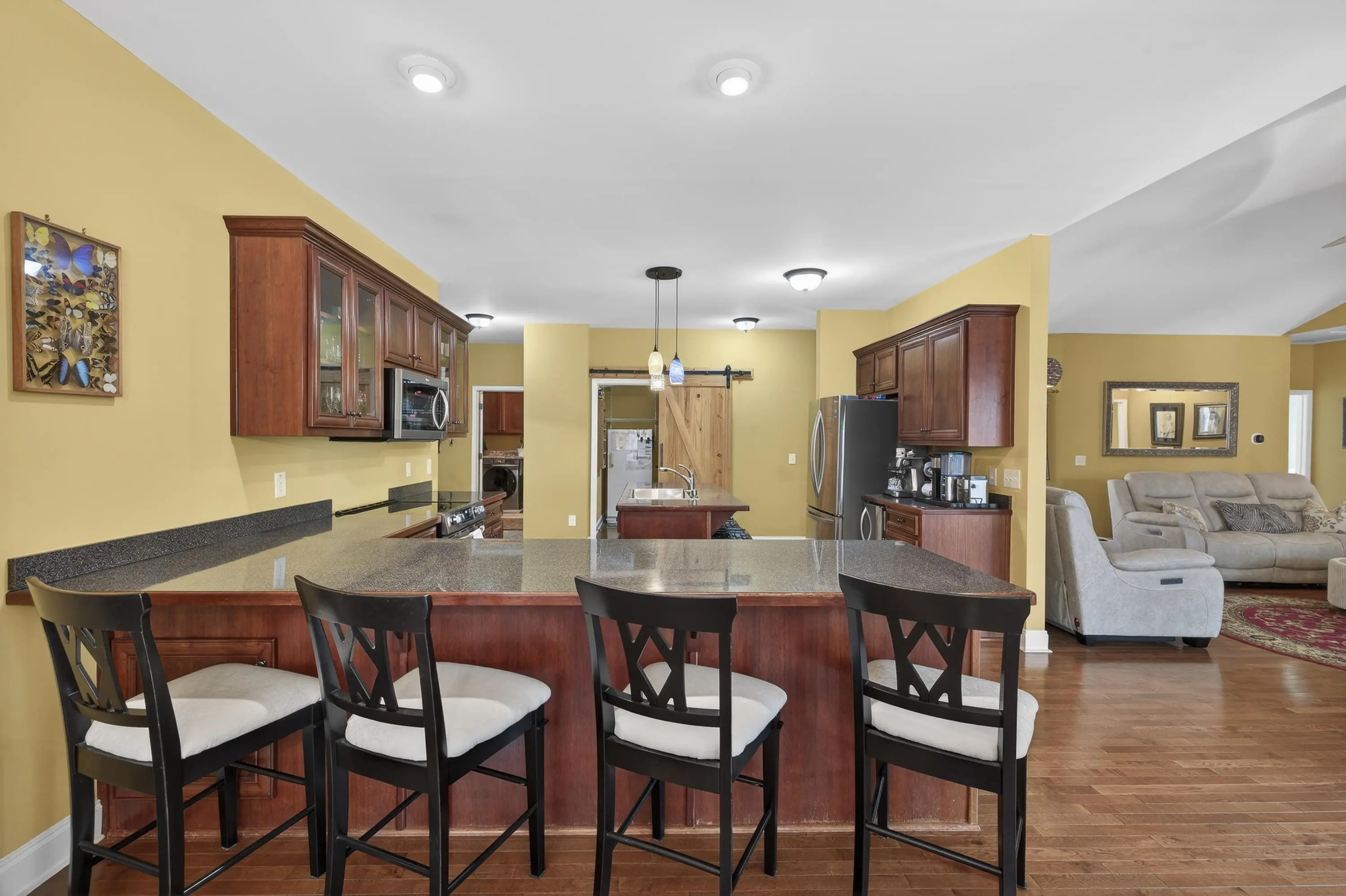 - AppliancesBuilt in Microwave, Dishwasher, Range, Refrigerator, Separate Ice Machine, StainlessSteel Appliances