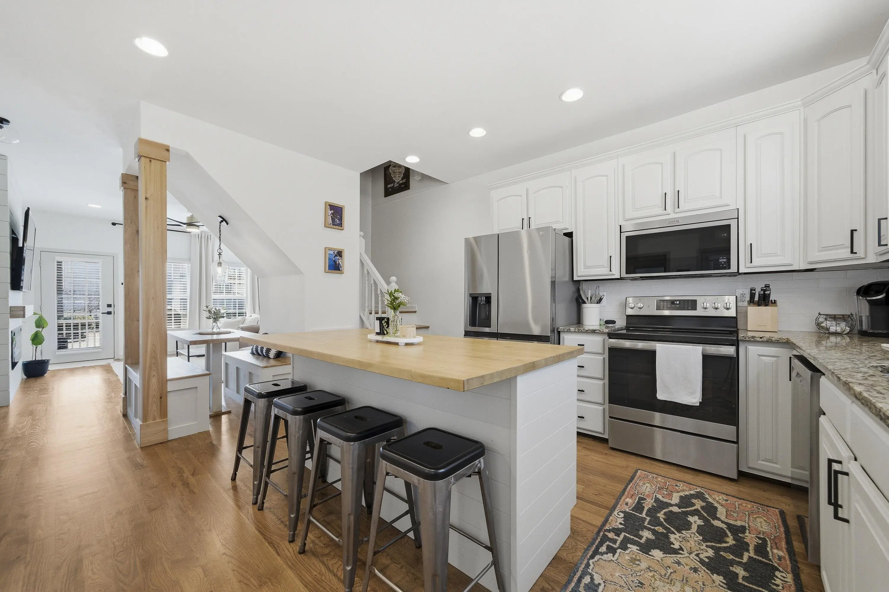 - AppliancesCook Top, Dishwasher, Freezer, Garbage Disposal, Microwave, Range, Refrigerator, StainlessSteel Appliances
