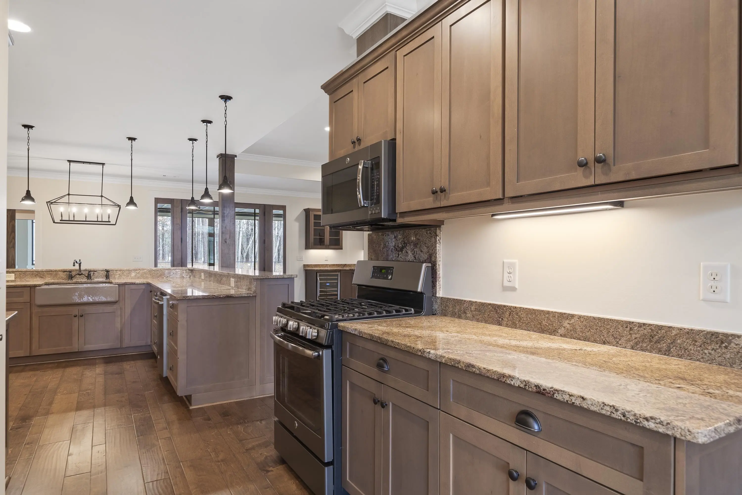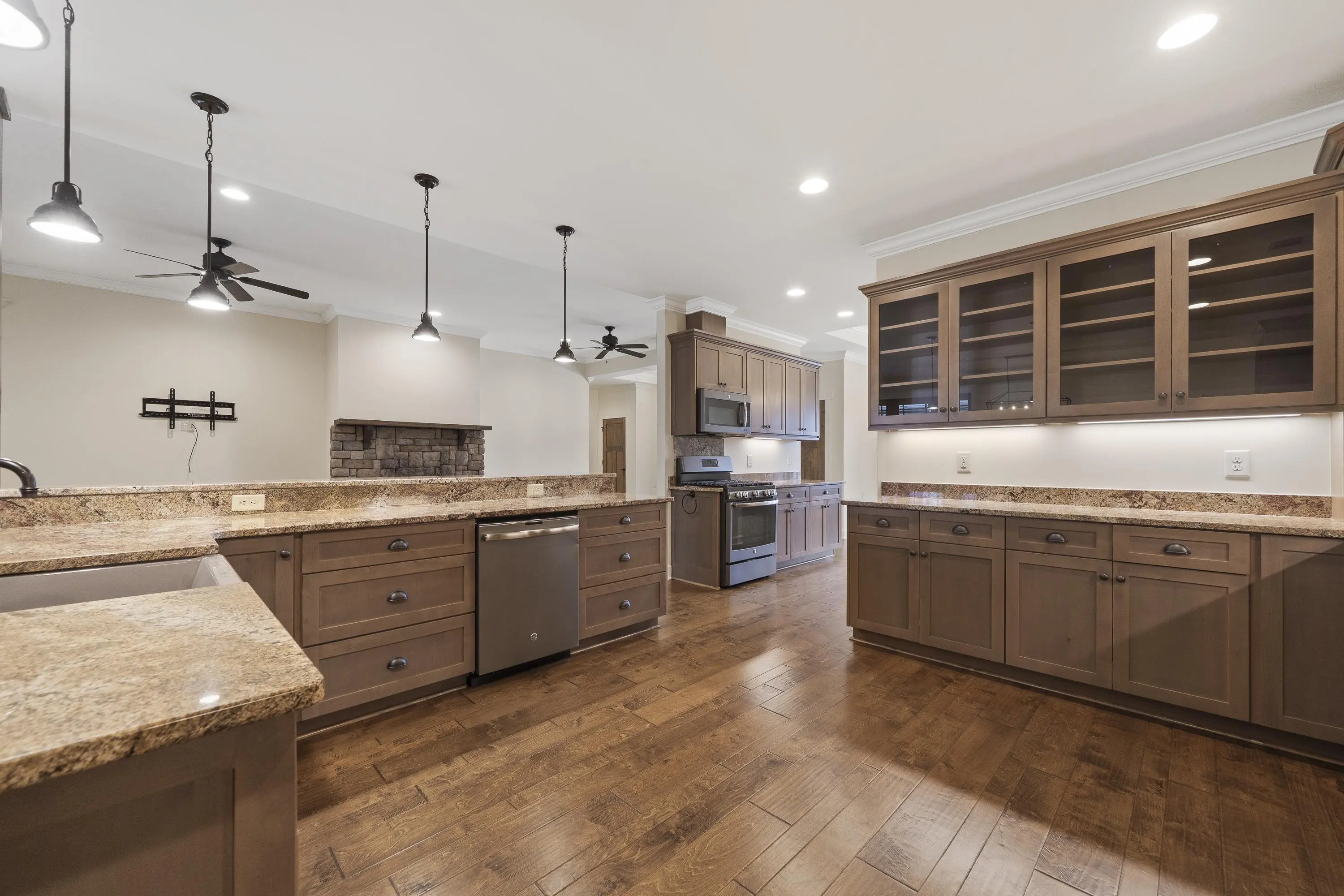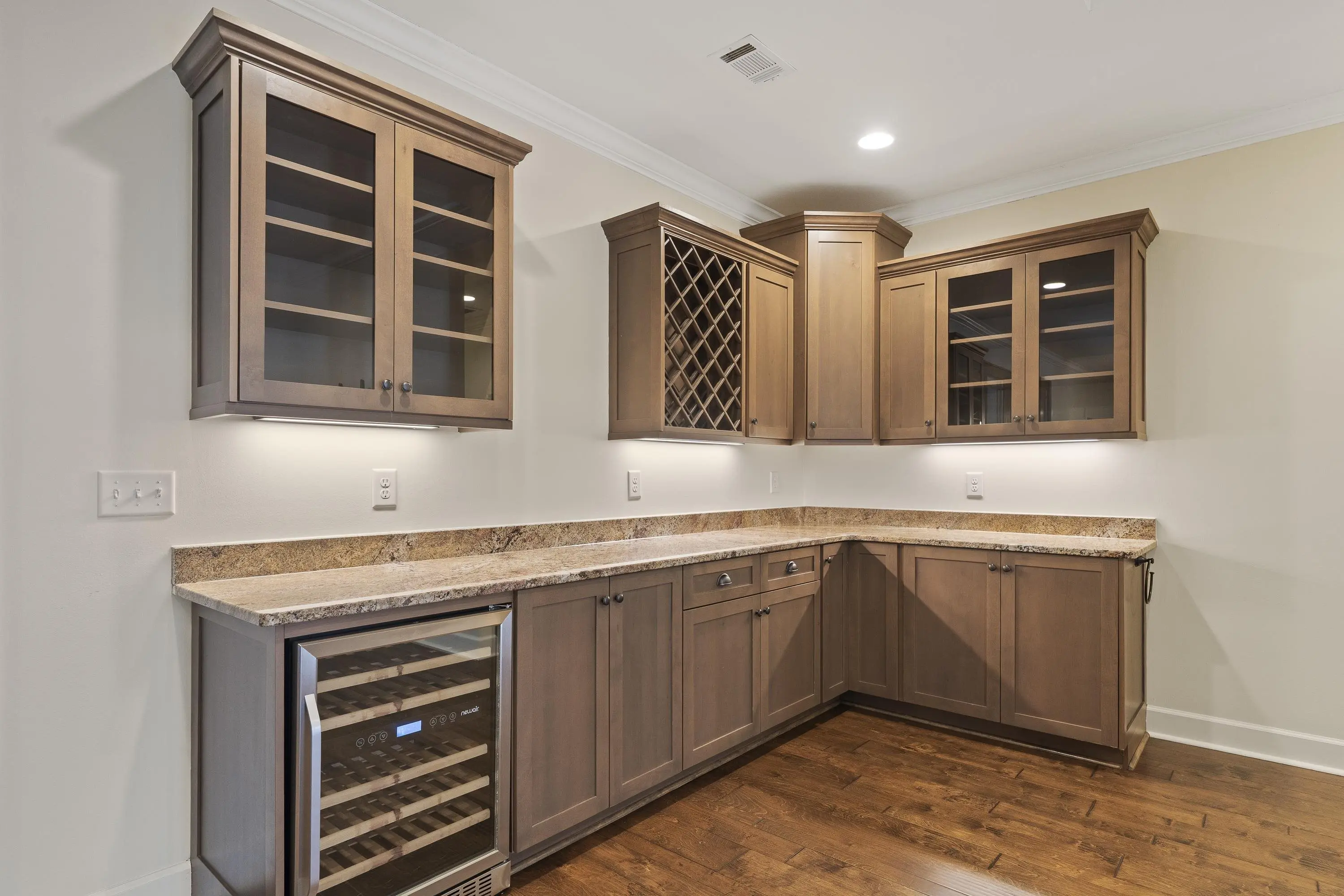 - AppliancesBuilt in Microwave, Dishwasher, Double Ovens, Range, Refrigerator, Vent Hood, Wine Cooler, StainlessSteel Appliances