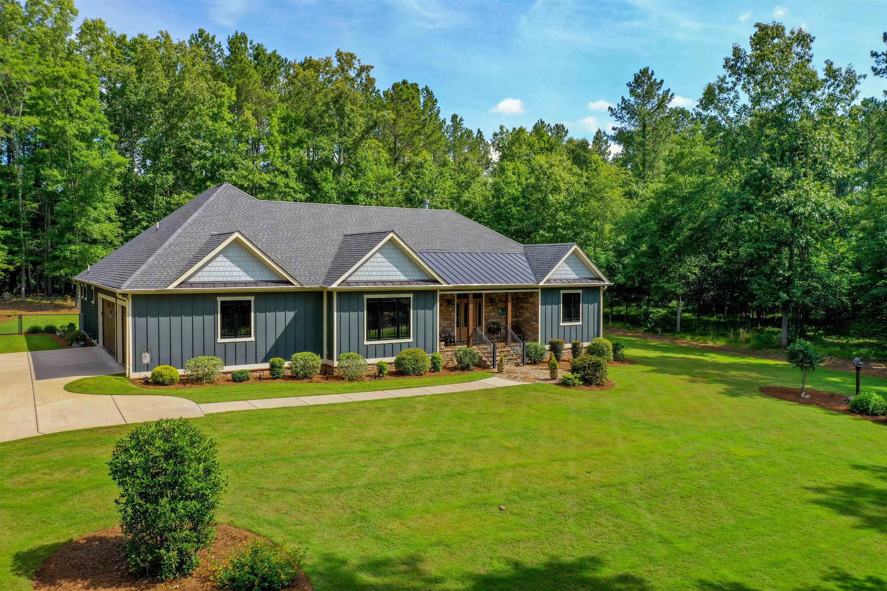 WELCOME HOME TO THIS STUNNING CUSTOM-BUILT ONE-STORY LOCATED ON 2.5 ACRES WITH BEAUTIFUL VIEWS OF LAKE SINCLAIR! THIS OPEN-CONCEPT HOME FEATURES 3,150+ SQUARE FEET AND A TRANQUIL SETTING PERFECT FOR OUTDOOR LIVING. THE CURB APPEAL IS EXCEPTIONAL, ENHANCED BY PROFESSIONAL LANDSCAPING THAT BEAUTIFIES EVERY CORNER OF THE PROPERTY. UPON ENTERING, YOU'LL FIND A SPACIOUS LIVING ROOM WITH A STACKED STONE FIREPLACE, A LARGE DINING AREA THAT CAN COMFORTABLY SEAT A TABLE FOR 12 OR MORE, AND A DREAM KITCHEN WITH A WRAP-AROUND BREAKFAST BAR. THE CHEF'S KITCHEN IS A TRUE HIGHLIGHT, FEATURING TWO COOKING STATIONS, EACH WITH ITS GAS RANGE/OVEN AND MICROWAVE, AS WELL AS DEDICATED COOKING SPACES. IT INCLUDES GRANITE COUNTERTOPS, CUSTOM CABINETS WITH PULL-OUT DRAWERS AND ORGANIZERS, AND A SIZABLE WALK-IN PANTRY. THIS 3-BEDROOM, 3-BATHROOM HOME IS HANDICAP ACCESSIBLE, WITH WIDE ENTRY DOORS THROUGHOUT. THE PRIMARY ENSUITE OFFERS A WALK-IN TILED SHOWER, A LARGE WALK-IN CLOSET, AND PRIVATE ACCESS TO THE SUNROOM AND SPACIOUS OUTDOOR COVERED PATIO. TWO ADDITIONAL EN-SUITES ARE LOCATED ON THE OPPOSITE SIDE OF THE HOUSE FOR OPTIMAL PRIVACY. AN OFFICE AND A LAUNDRY ROOM, EQUIPPED WITH A UTILITY SINK AND AN EXTRA REFRIGERATOR, COMPLETE THIS THOUGHTFULLY DESIGNED FLOOR PLAN. THE BEAUTIFUL, SOLID WOOD DOORS MATCH THE HARDWOOD FLOORING THAT FLOWS THROUGH THE MAIN LIVING AREAS. THE LOW-MAINTENANCE, ENERGY-EFFICIENT SUN CASEMENT WINDOWS AND DOORS ENHANCE THE EXTERIOR, FINISHED WITH DURABLE HARDY BOARD SIDING AND TRIM. THE PROPERTY FEATURES A CHARMING STONE-CLAD ENTRY PORCH WITH PATIO SPACE FOR GREETING GUESTS, ALONG WITH A LARGE COVERED REAR PORCH AND AN ADDITIONAL STONE PATIO, IDEAL FOR ENTERTAINING. THIS ENERGY-EFFICIENT HOME HAS AN ON-DEMAND WATER HEATER, A FULLY SPRAY-FOAMED ATTIC FOR REMARKABLY LOW UTILITY BILLS, AND A FENCED BACKYARD WITH THREE GATES FOR EASY ACCESS. THE 3-CAR GARAGE OFFERS AMPLE PARKING AND STORAGE, THE CRAWL SPACE IS 4 FEET HIGH WITH POURED CONCRETE, AND A SEPARATE STORAGE SHED WITH ELECTRICITY WILL CONVEY WITH THE PROPERTY. CROOKED CREEK MARINA IS CONVENIENTLY LOCATED A FEW MILES AWAY, MAKING LAKE ACCESS EASY AND ENJOYABLE. CONTACT ME TODAY TO SCHEDULE A VIEWING OF THIS INCREDIBLE PROPERTY!
