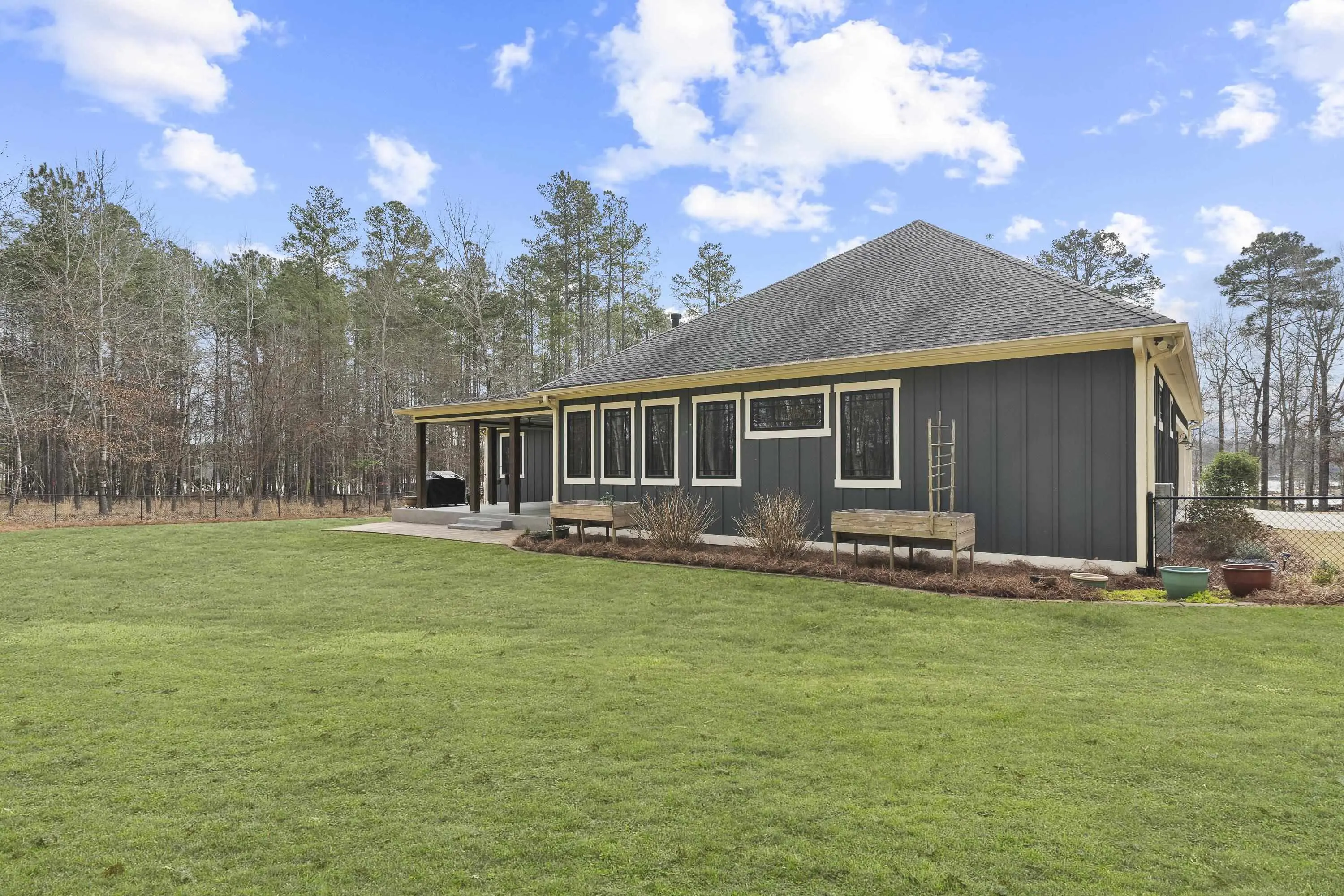 - FeaturesFenced Fully, Garden Area, Irrigation System, Paved Driveway, Paved Walkway, Professional Landscaping, Shed