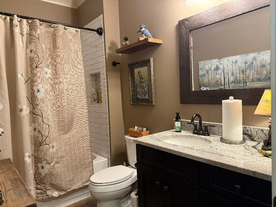 THE LAKE HOUSE! AS YOU ENTER THE FOYER, ENJOY THE LVP FLOORING, THE WALL OF WINDOWS TO THE GREAT OUTDOORS. FAMILY ROOM WITH VAULTED PINE CEILING, OPEN FLOORPLAN FOR GREAT ENTERTAINING. SCREEN PORCH WITH VAULTED CEILING, SEPARATE GRILL DECK ON RIGHT AND SUN DECK ON LEFT. OWNERS SUITE ON MAIN, 2ND BEDROOM, KITCHEN WITH STAINLESS STEEL APPLIANCES, DINING AND GRANITE ISLAND FOR SERVING AND EXTRA SEATING. CUSTOM BUILT WITH WALK OUT TO LAKE ON LOWER LEVEL. REMOTE CONTROL BLINDS, DUAL FUEL, HEAT PUMP AND GAS, TANKLESS WATER HEATER, ALL COMPOSITE DECKING. FOAM INSULATION IN ROOF. UNFINISHED 1466SQ WITH ROOM FOR 3RDBATH(STUBBED IN) 3RD AND/OR 4TH BEDROOM, FAMILY ROOM/THEATER AND FLEX ROOM. UTILITY SINK COULD ALLOW ROOM FOR 2ND KITCHEN. MAKE THIS YOUR LAKE HOME. DOCK WITH BOAT SHELTER AND SO MUCH MORE.
