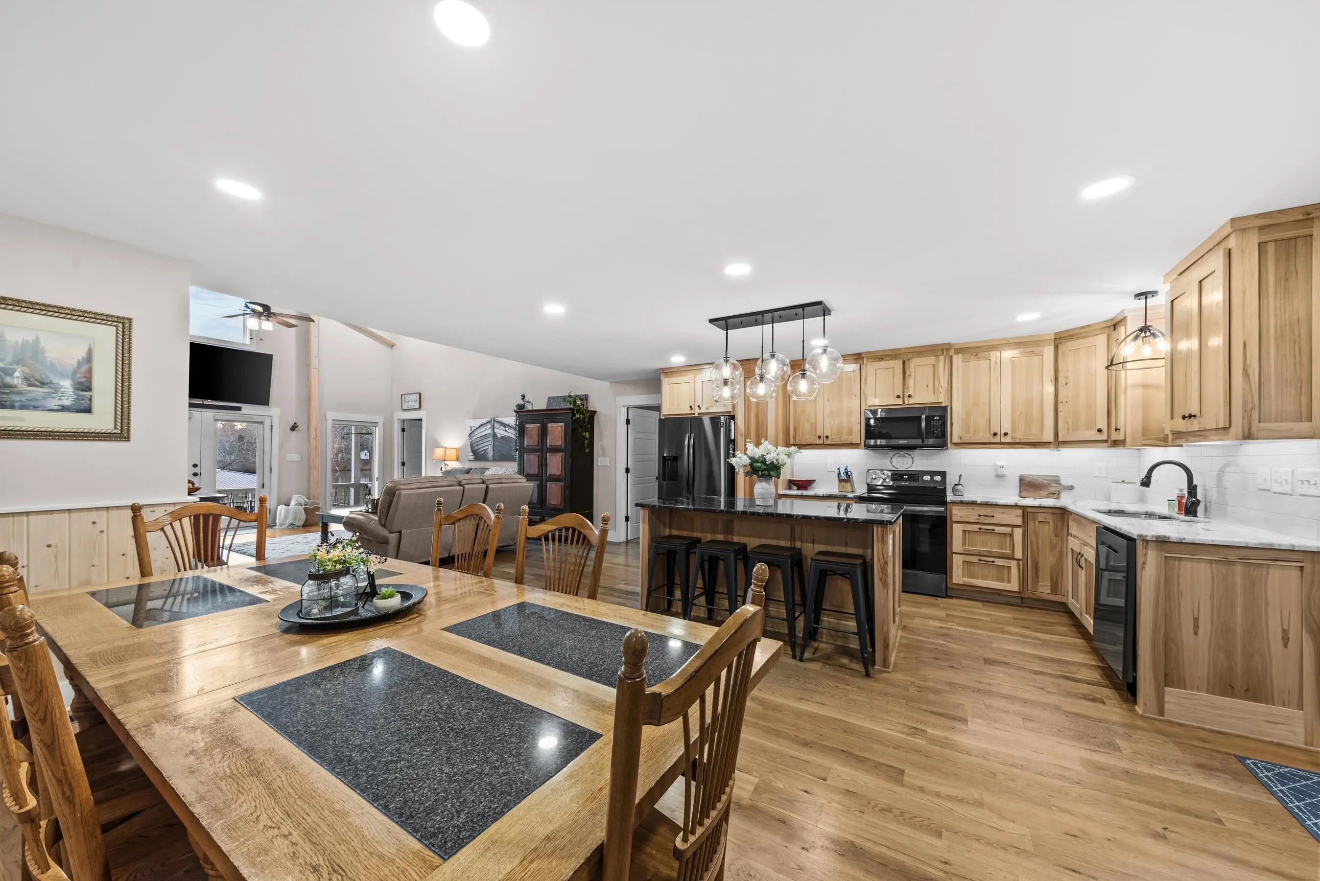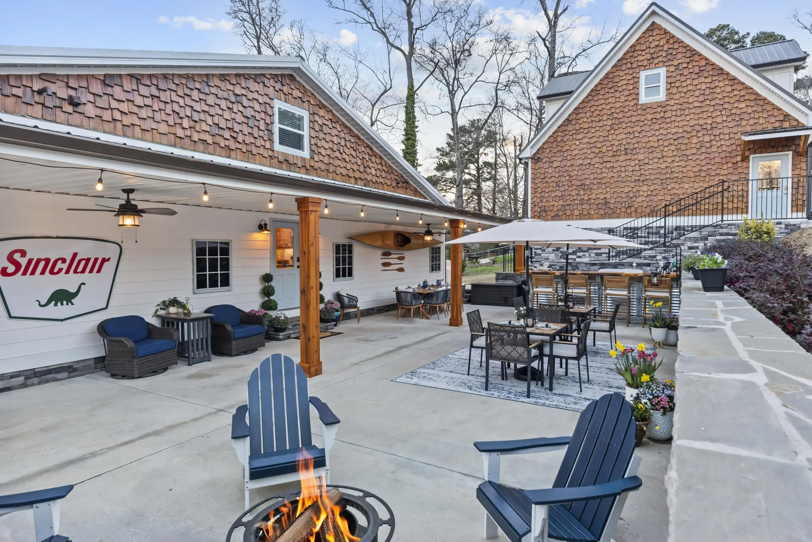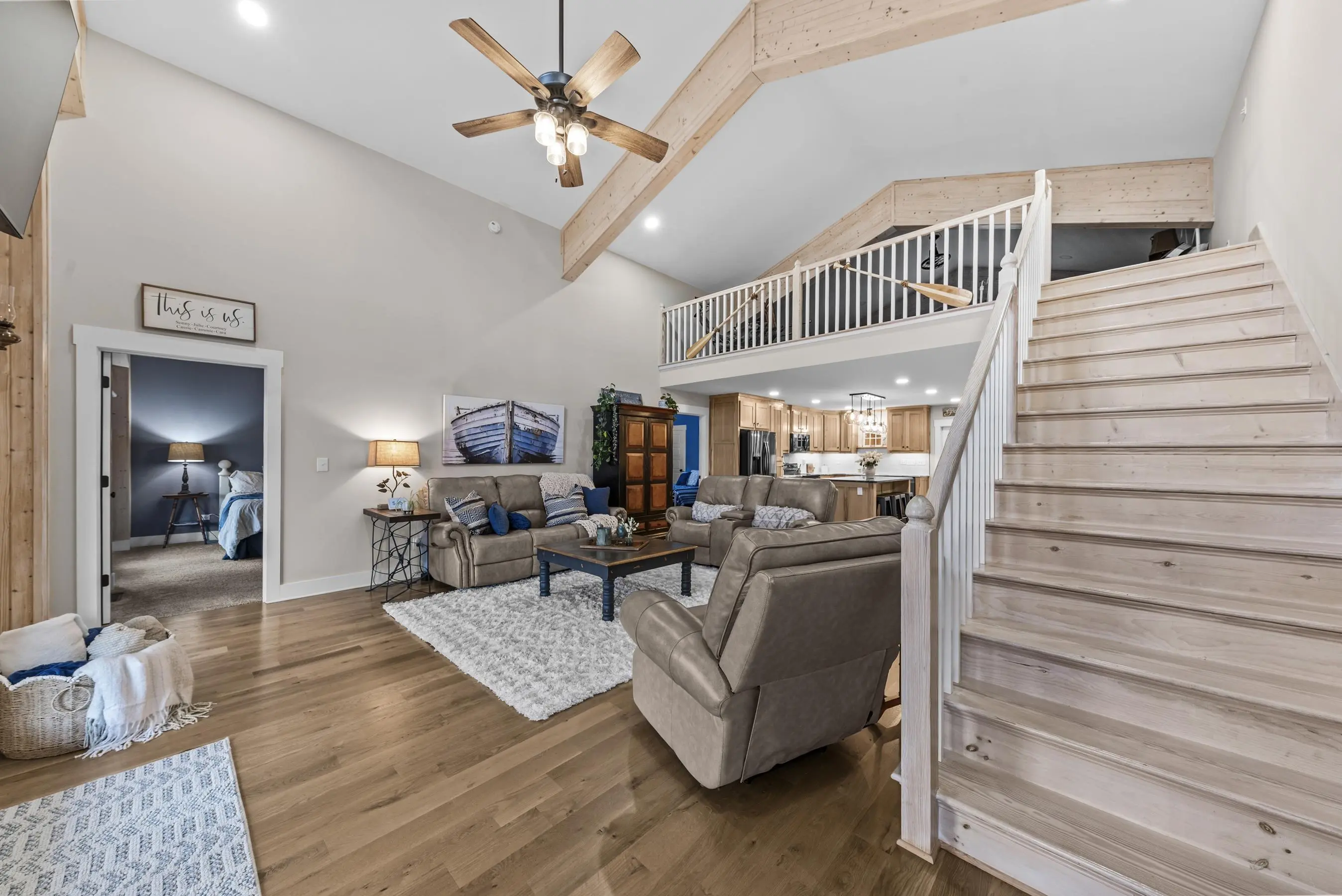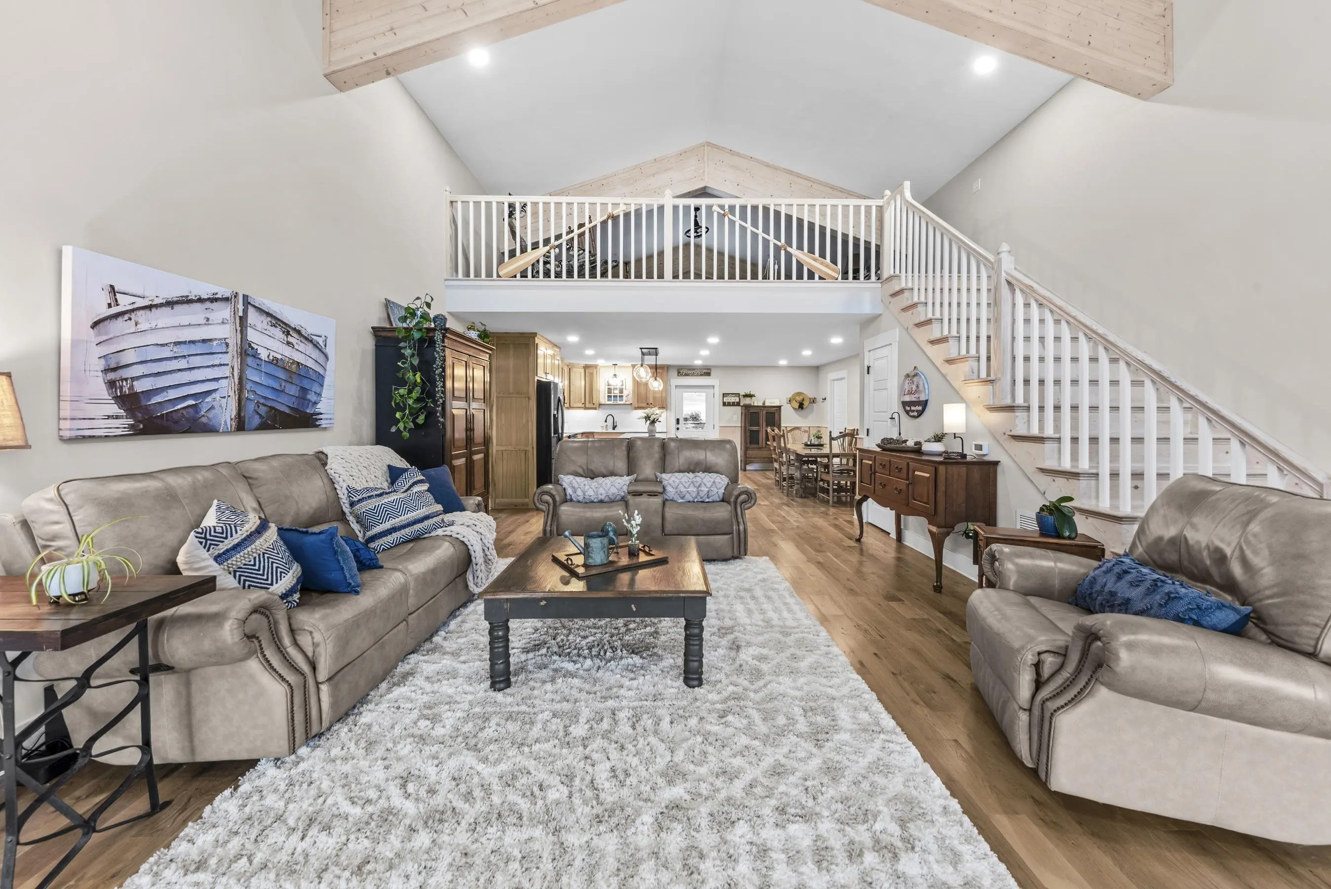 THIS ONE HAS IT ALL! INCREDIBLE VIEWS, SALTWATER POOL, GUEST COTTAGE AND BEST PORCHES ON THE LAKE! This property screams "FAMILY AND FRIENDS" and can SLEEP 16 COMFORTABLY. Red iron supported steel exterior framing with hardy board siding makes this a structural force to be reckoned with! The main home has 2 PRIMARY SUITES on the MAIN LEVEL plus a 3rd bedroom and a huge OPEN LOFT designed with both play space and sleeping space. Open kitchen plan with quartz and custom quality hickory cabinets- vaulted family room w/hardwood flooring. 2nd pantry with extra storage in laundry room. Ice maker conveys to keep the drinks ice cold! Detached DOUBLE GARAGE with charming upper 1 BR 1 BA COTTAGE with full kitchen and laundry! So cute... and the views from the cottage are the BEST! Outdoor living is unmatched here: the street-side ELEGANT porch (25x50) is a go-to gathering spot for family gatherings and meals - seats so many! The lake-side porch (10x50) spans the home, overlooking the saltwater pool and level lot. Stocked Koi pond. DOUBLE BOATHOUSE will knock your socks off! Small man cave outbuilding is an extra bonus. Great WATER FRONTAGE, great VIEW, great LOCATION and all the makings for the perfect family gathering place! Fee simple.