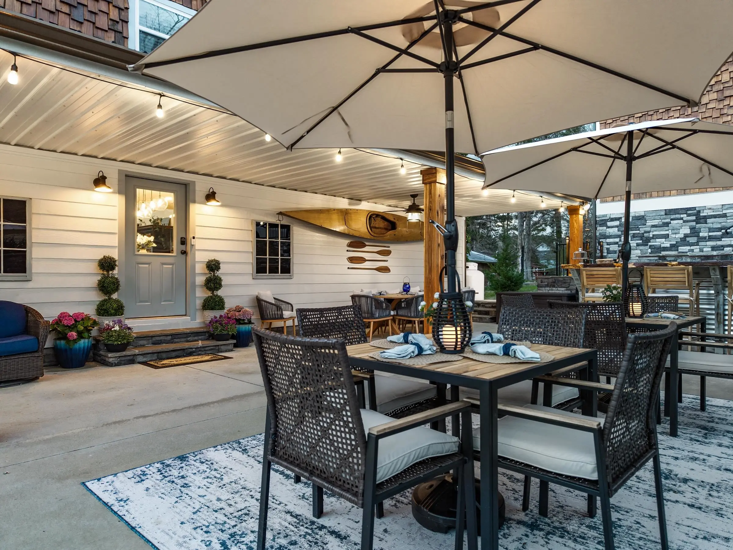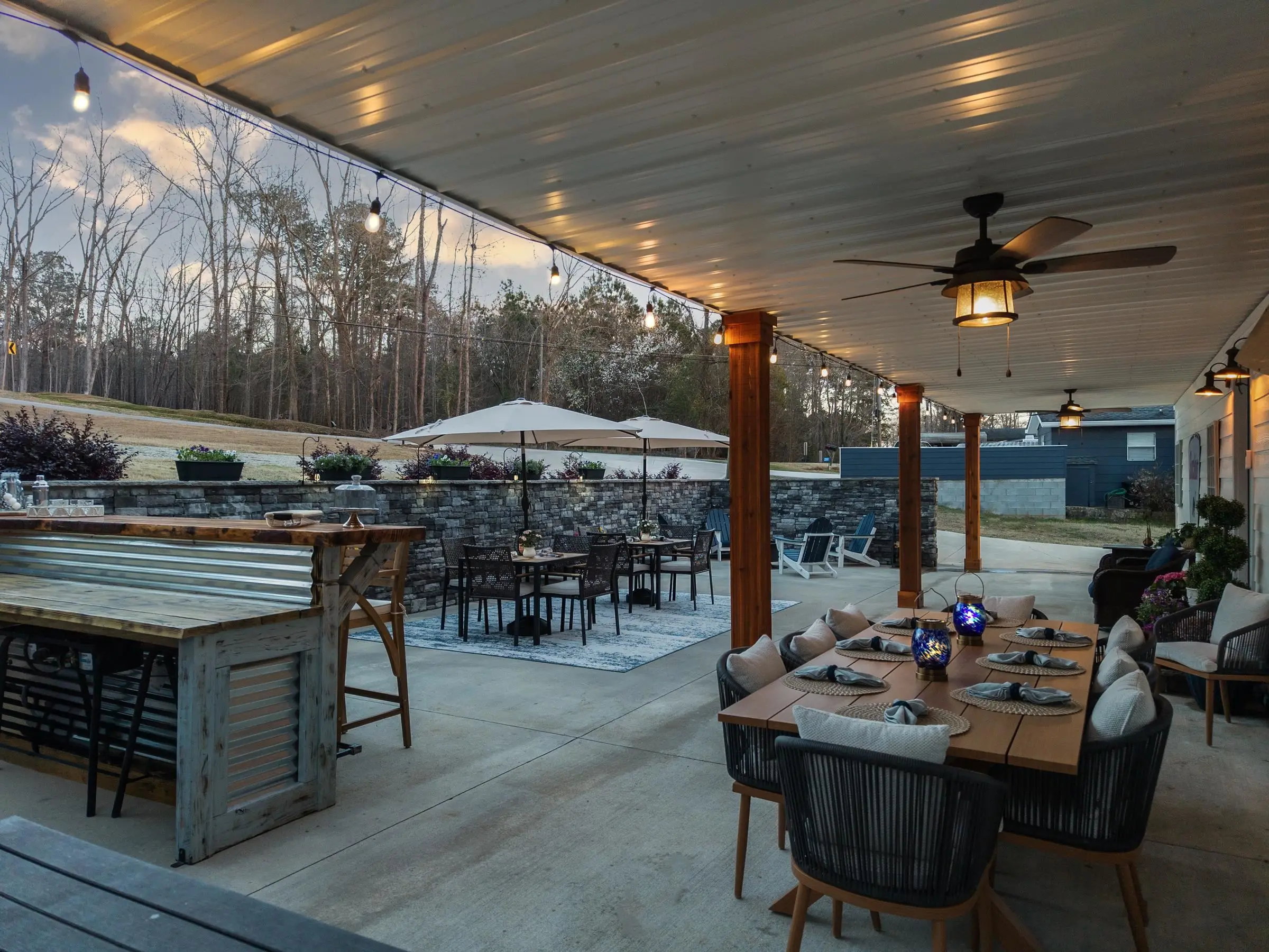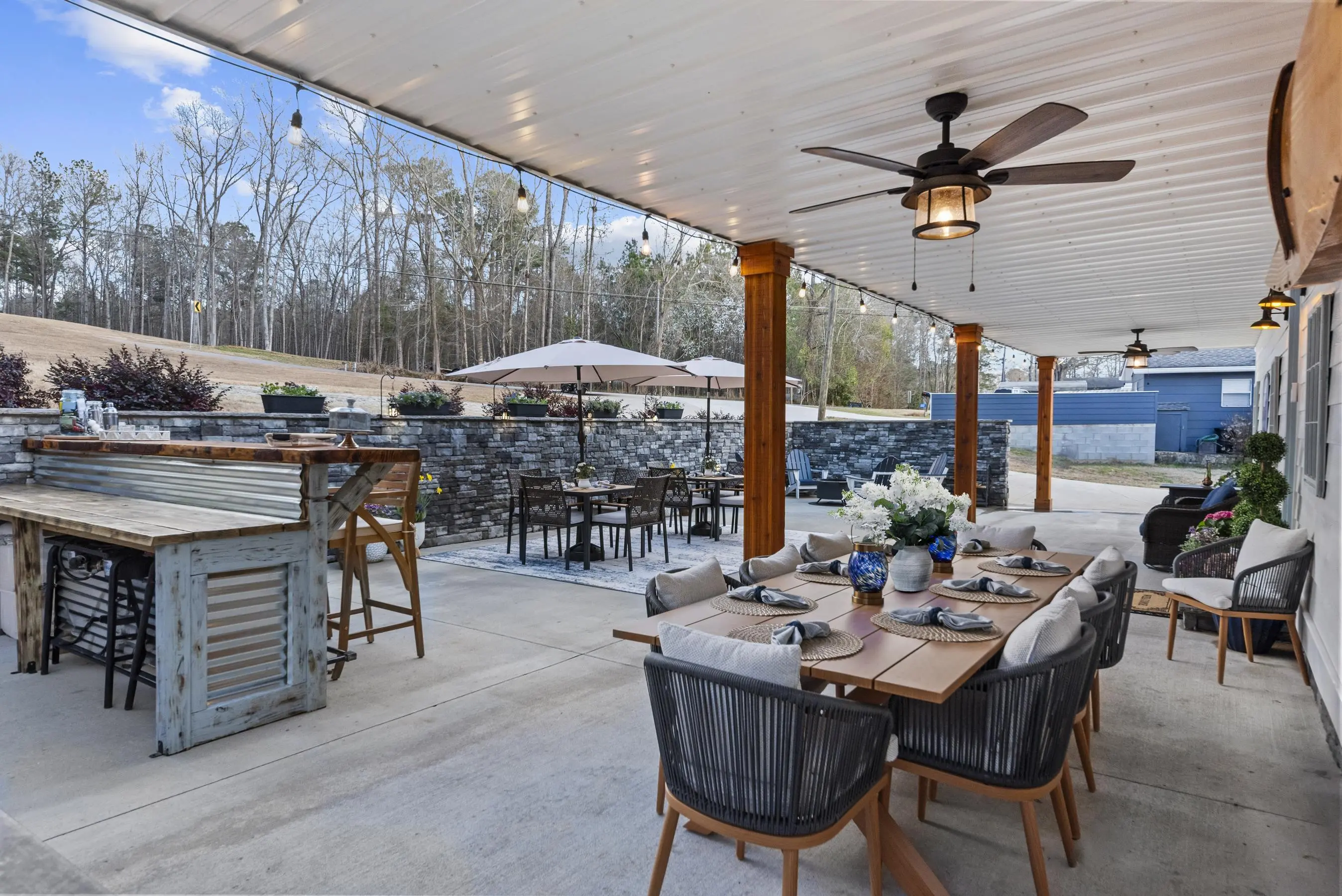 - Exterior FeaturesCovered Deck, Covered Patio, Patio