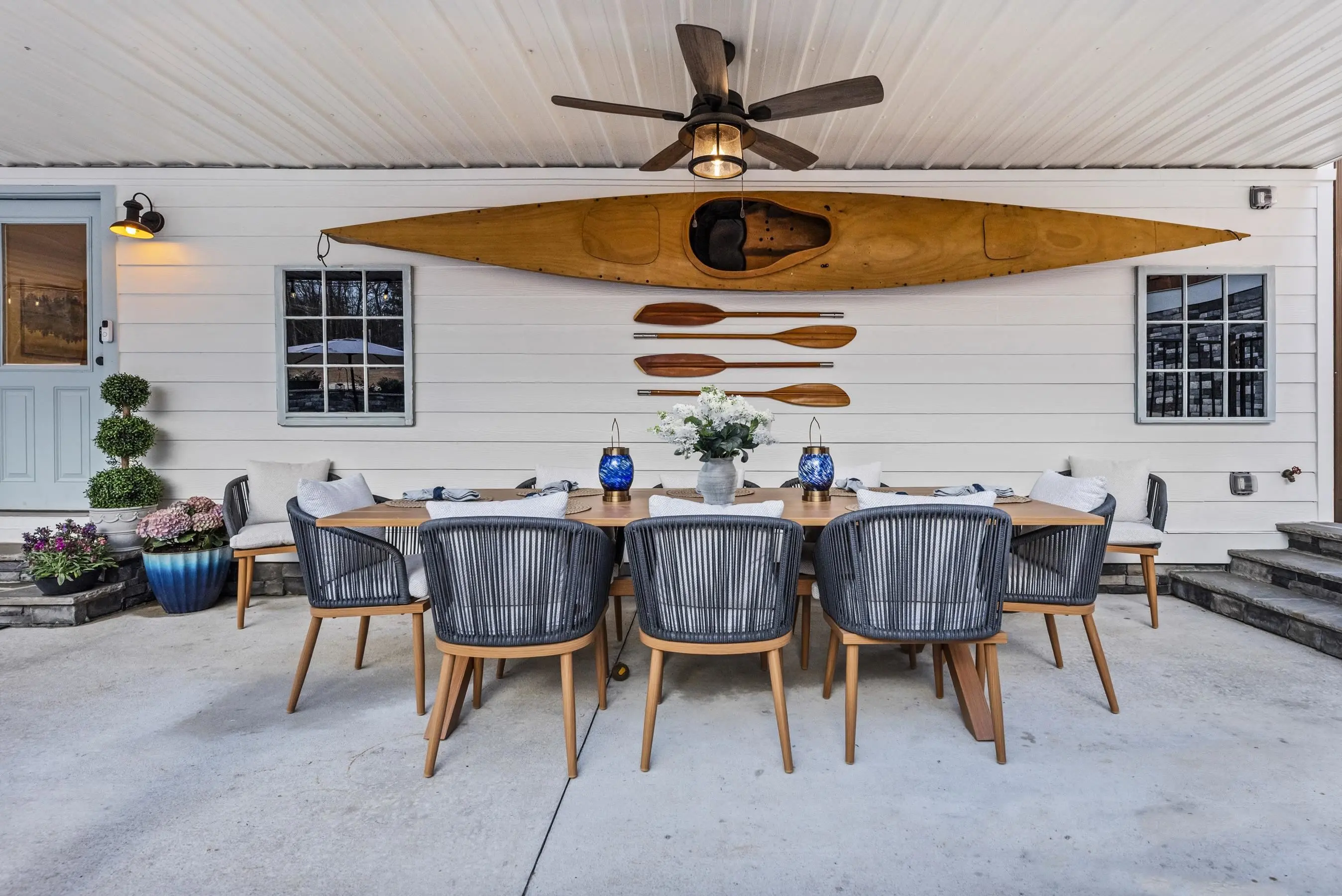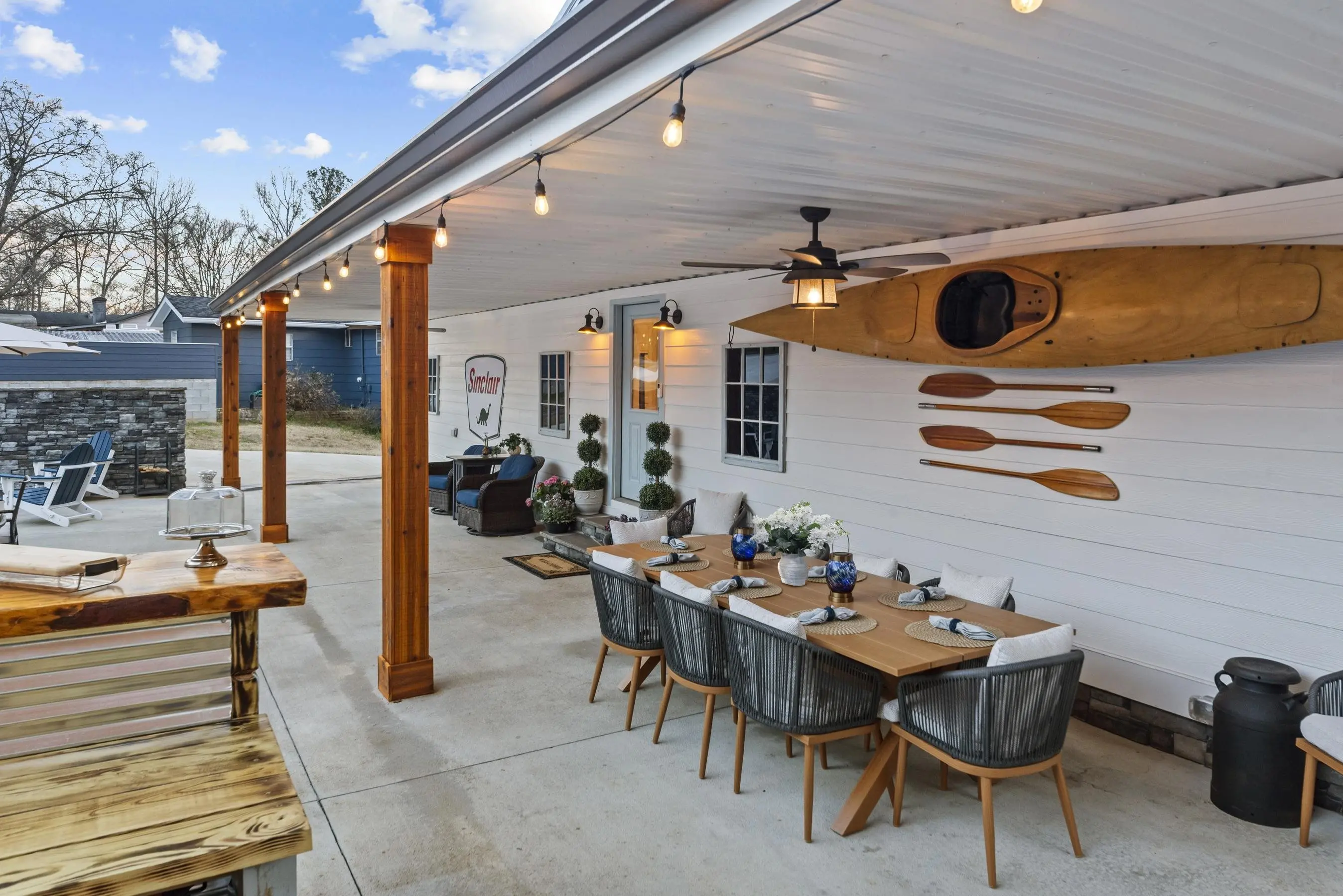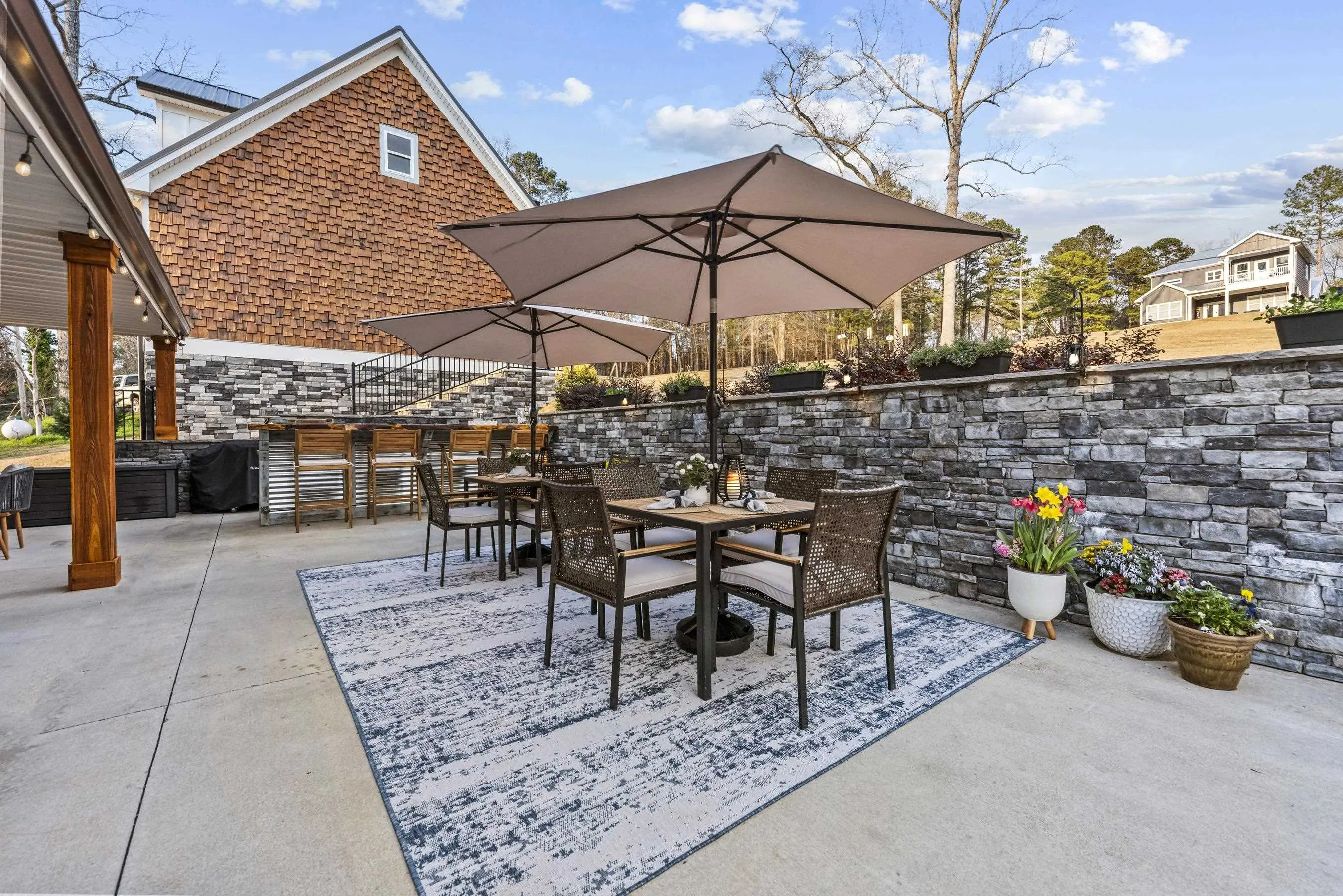 - Exterior FeaturesCovered Deck, Covered Patio, Patio