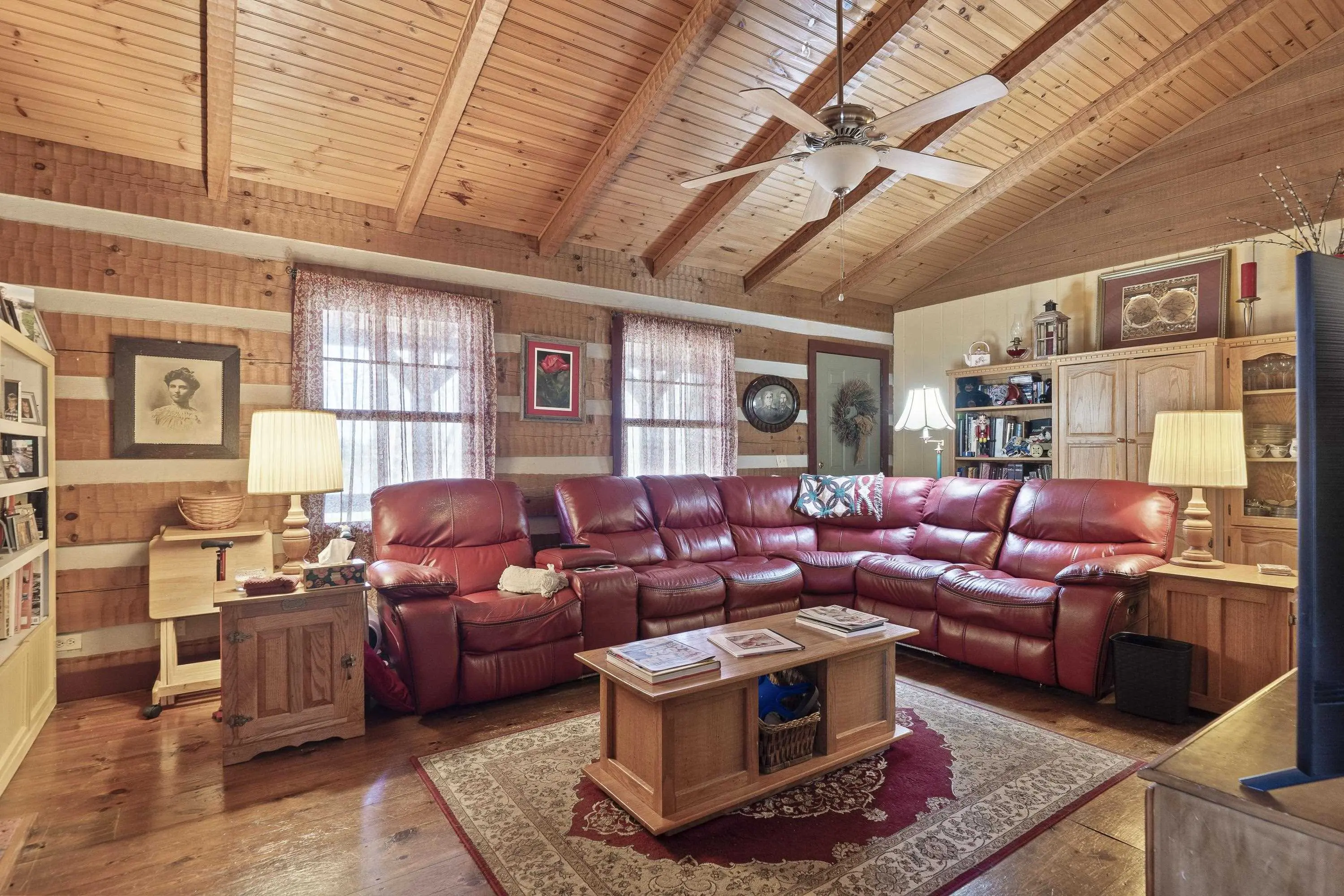 Log Cabin life in a great location with Lake Oconee views and a short drive to all the lake area amenities. This comfortable 2 bed 2 bath home w/office. Large living room, nice kitchen and dining area. Wrap around porches and a basement that is approx. 30x30 currently serves as a model Train village, could be easily transformed into quality living space. The detached building has a garage bay set up as a shop on one side and a large guest bedroom on the other side with a bathroom and kitchenette area. Peaceful country setting located close to Eatonton, Madison and Milledgeville. Marina and dry boat storage 5 min away.