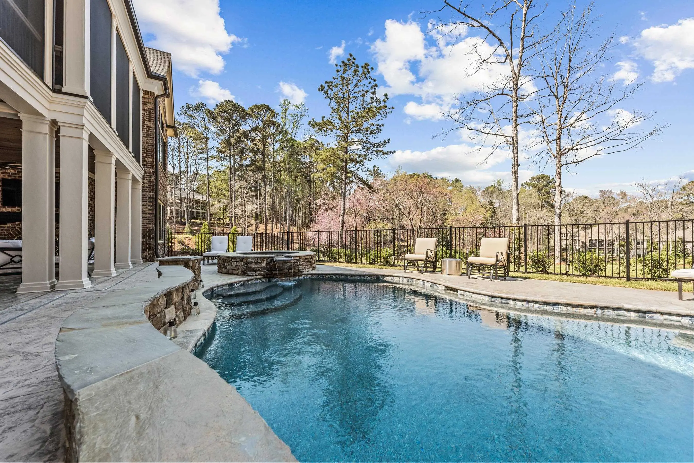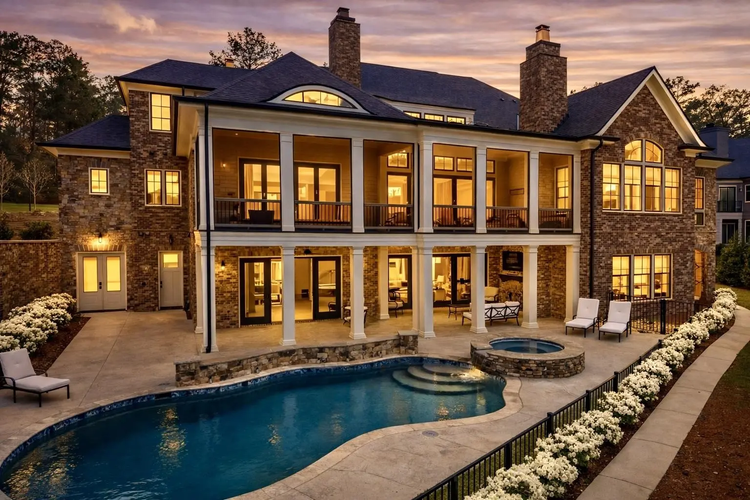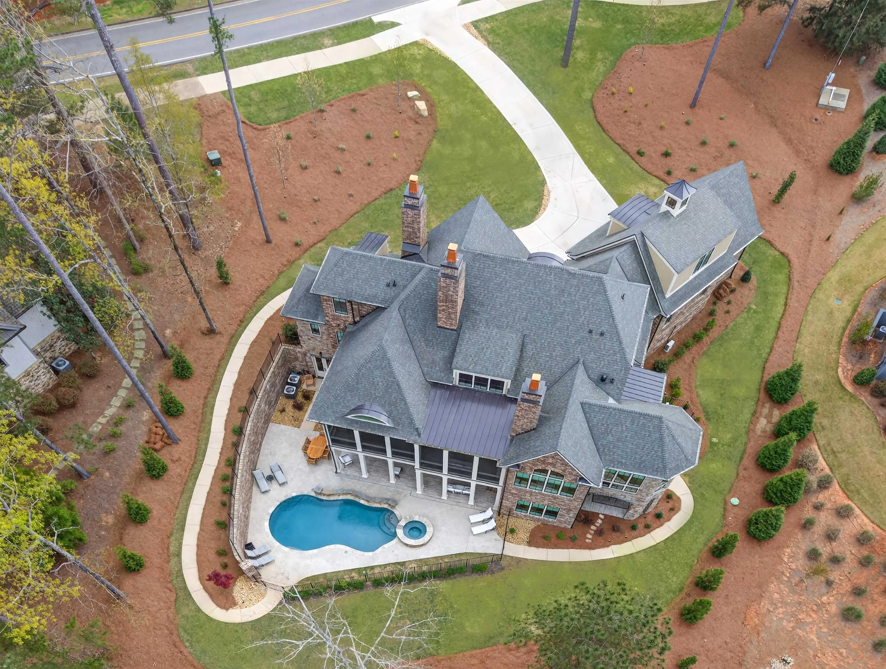 An extraordinary custom golf estate by Walden Signature Homes, this newly completed 2025 masterpiece offers 5 bedrooms, 6.5 bathrooms, and nearly 8,400 square feet of impeccably designed living. Thoughtfully appointed with a private theater, second kitchen, billiard room, wine cellar, elevator, fitness studio, and a heated saltwater pool, this residence is ideally positioned to capture sweeping panoramic views of the iconic 12th green of the ReynoldsâOconee Courseâone of the communityâs most coveted vantage points. Designed for the discerning golf enthusiast, the home delivers a true front-row experience to championship play, where expansive fairway vistas unfold, creating an ever-changing backdrop of beauty and tranquility. Constructed with a timeless blend of brick, natural stone, and Hardie Shake, the home features an open-concept design with wide-plank hardwood floors, three Isokern masonry fireplaces, bespoke cabinetry, soaring vaulted beam ceilings, and a grandeur of elegant trim throughout. Expansive screened verandas with fireplaces create the perfect setting to relax and entertain while enjoying uninterrupted golf course views. A formal dining room and an elegant keeping room just off the kitchen provide inviting spaces for entertaining, while a main-level office adds both functionality and sophistication. The chefâs kitchen is a true centerpiece, appointed with side-by-side Sub-Zero 36â refrigerator and freezer, a Wolf 48â professional range, quartzite countertops, beverage refrigerator, built-in ice machine, and a beautifully designed butlerâs pantry. The main-level primary suite offers a private retreat with serene fairway views and direct access to a screened veranda. Additional luxury bedroom suites on both the upper and terrace levels provide exceptional comfort and privacy for guests. The terrace level is thoughtfully designed for leisure and entertainment, featuring a private theater, second kitchen, billiard/game room, wine cellar, and fitness studioâperfect for unwinding after a day on the course. Outdoors, a private, fenced, heated saltwater pool and spa overlook the fairway, creating a tranquil, resort-inspired oasis framed by sweeping golf views. Ideally located within walking distance to Reynolds Lake Club, the Marina, and The Ritz-Carlton, this exceptional estate offers effortless access to world-class golf, dining, and amenities. Membership available.