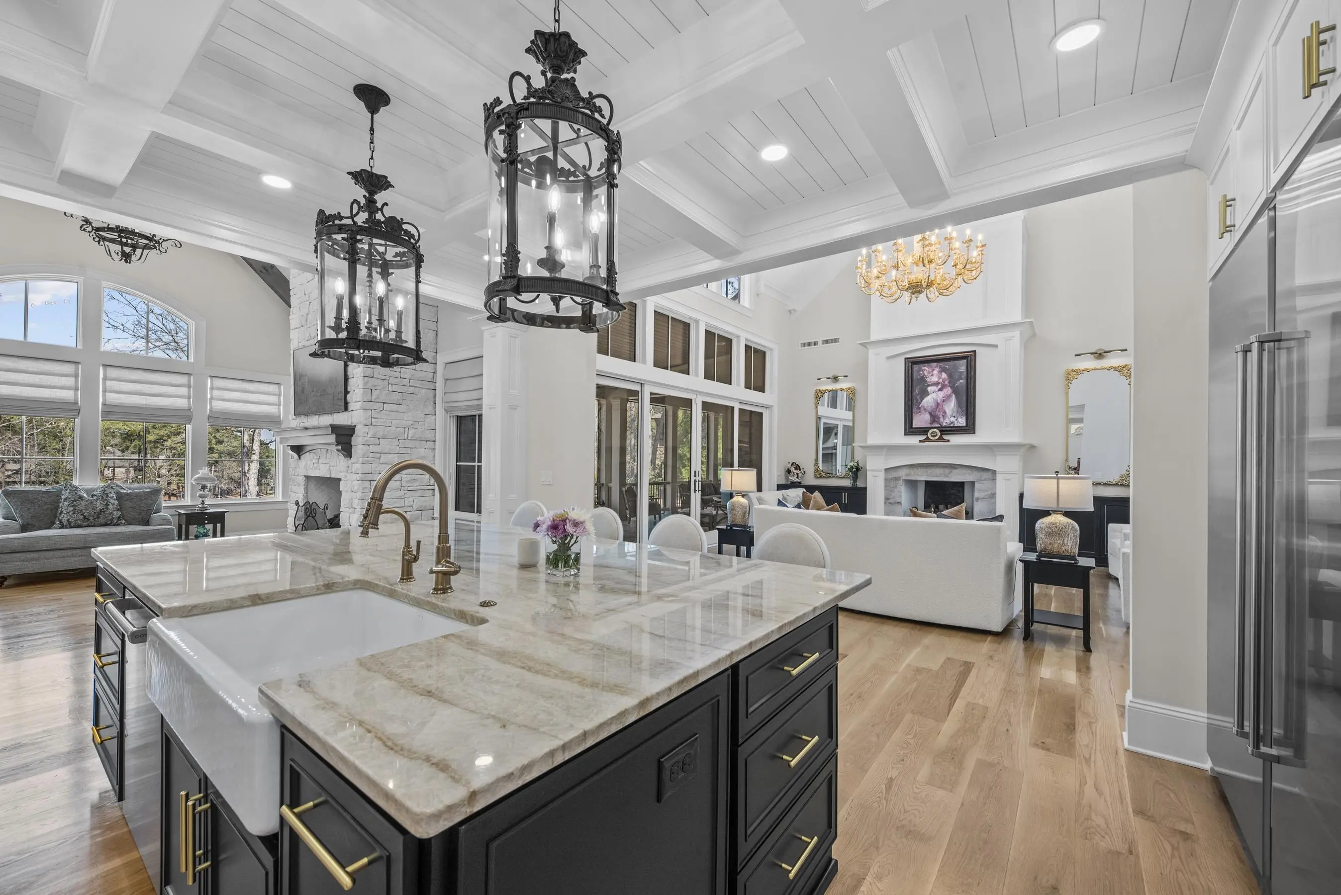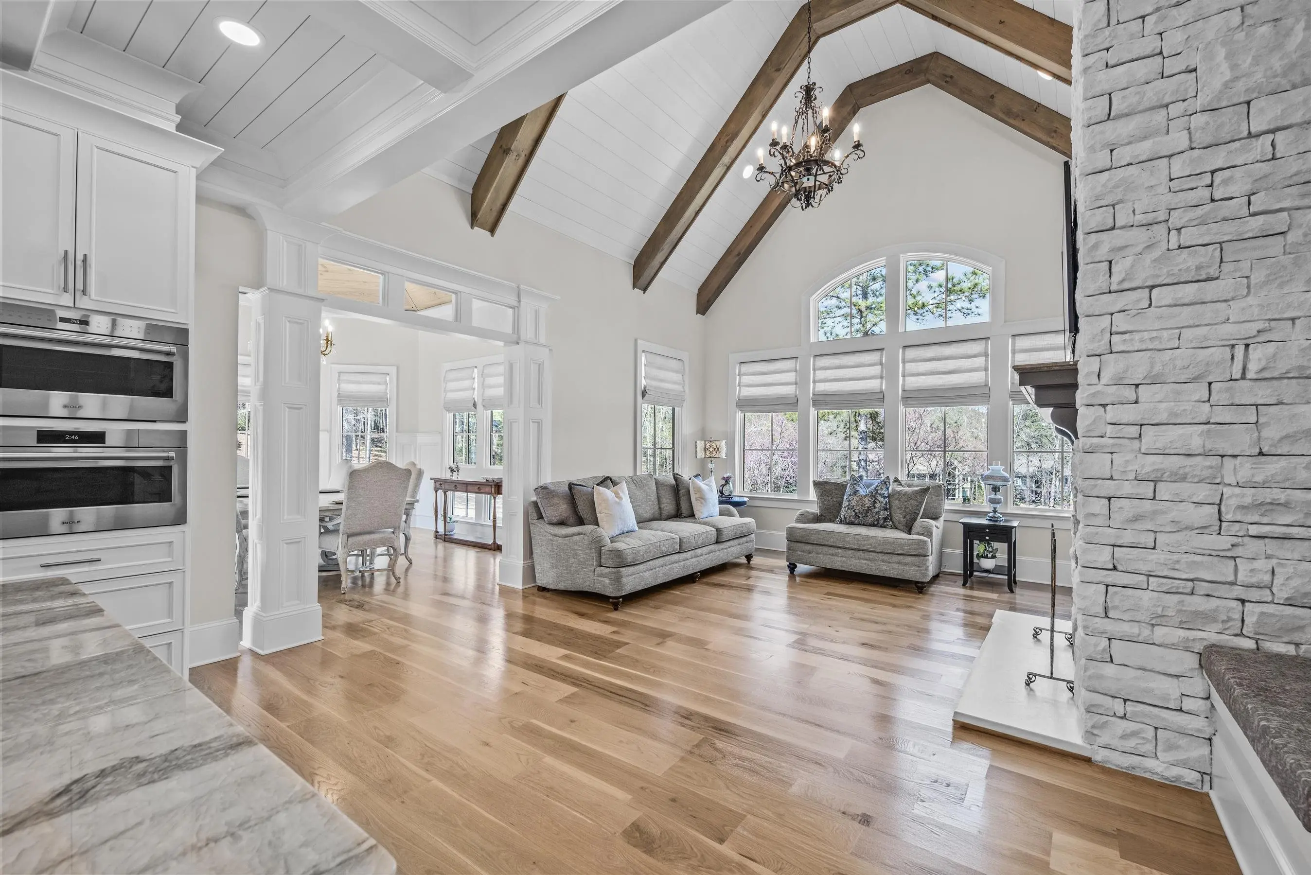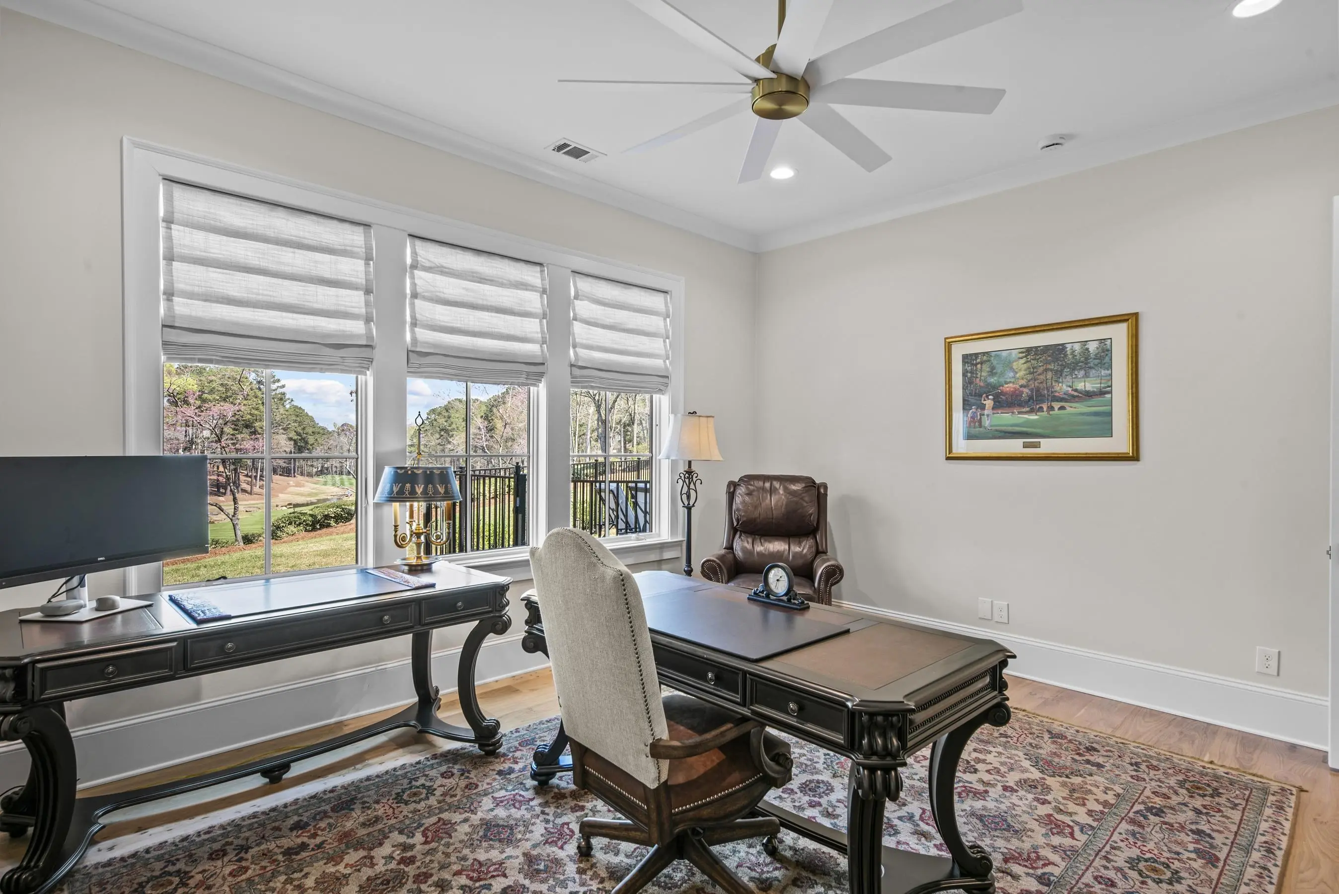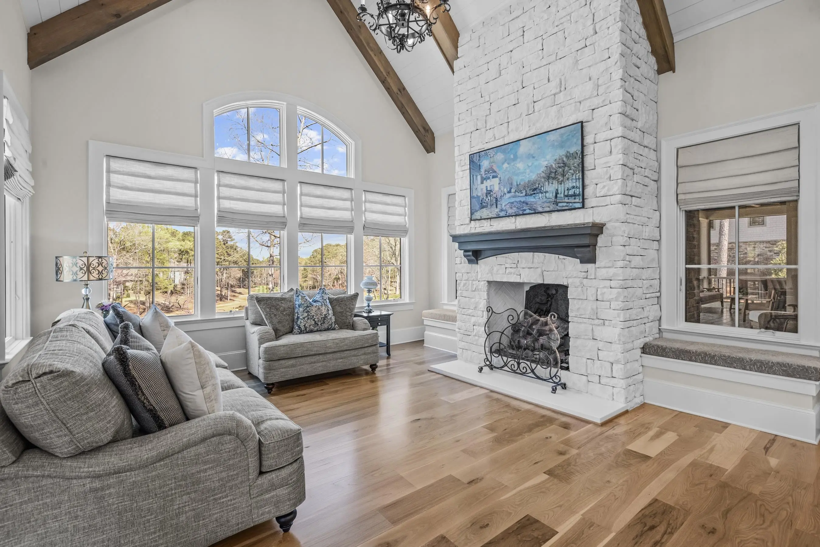 An extraordinary custom golf estate by Walden Signature Homes, this newly completed 2025 masterpiece offers 5 bedrooms, 6.5 bathrooms, and nearly 8,400 square feet of impeccably designed living. Thoughtfully appointed with a private theater, second kitchen, billiard room, wine cellar, elevator, fitness studio, and a heated saltwater pool, this residence is ideally positioned to capture sweeping panoramic views of the iconic 12th green of the ReynoldsâOconee Courseâone of the communityâs most coveted vantage points. Designed for the discerning golf enthusiast, the home delivers a true front-row experience to championship play, where expansive fairway vistas unfold, creating an ever-changing backdrop of beauty and tranquility. Constructed with a timeless blend of brick, natural stone, and Hardie Shake, the home features an open-concept design with wide-plank hardwood floors, three Isokern masonry fireplaces, bespoke cabinetry, soaring vaulted beam ceilings, and a grandeur of elegant trim throughout. Expansive screened verandas with fireplaces create the perfect setting to relax and entertain while enjoying uninterrupted golf course views. A formal dining room and an elegant keeping room just off the kitchen provide inviting spaces for entertaining, while a main-level office adds both functionality and sophistication. The chefâs kitchen is a true centerpiece, appointed with side-by-side Sub-Zero 36â refrigerator and freezer, a Wolf 48â professional range, quartzite countertops, beverage refrigerator, built-in ice machine, and a beautifully designed butlerâs pantry. The main-level primary suite offers a private retreat with serene fairway views and direct access to a screened veranda. Additional luxury bedroom suites on both the upper and terrace levels provide exceptional comfort and privacy for guests. The terrace level is thoughtfully designed for leisure and entertainment, featuring a private theater, second kitchen, billiard/game room, wine cellar, and fitness studioâperfect for unwinding after a day on the course. Outdoors, a private, fenced, heated saltwater pool and spa overlook the fairway, creating a tranquil, resort-inspired oasis framed by sweeping golf views. Ideally located within walking distance to Reynolds Lake Club, the Marina, and The Ritz-Carlton, this exceptional estate offers effortless access to world-class golf, dining, and amenities. Membership available.