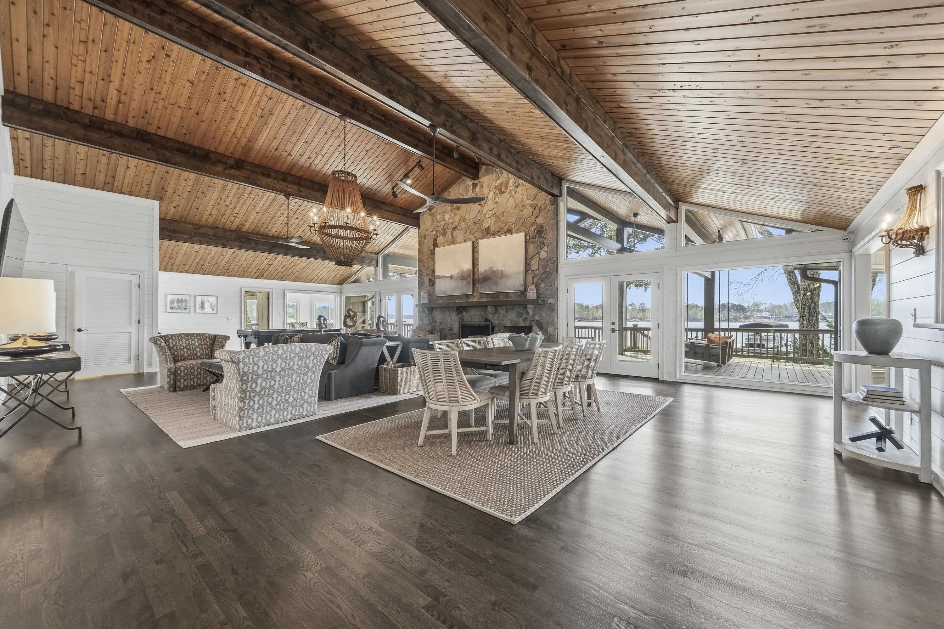 Set on what is arguably one of the finest lakefront lots in all of Reynolds Lake Oconee, this truly one-of-a-kind estate offers an extraordinary combination of privacy, views, and effortless single-level living. Featuring five bedrooms and five bathsâall thoughtfully designed on one levelâthis home delivers both convenience and sophistication in equal measure. Completely reimagined with recent, high-quality renovations, every inch of the residence has been meticulously updated, blending timeless character with modern finishes to create a move-in ready masterpiece. Walls of windows frame breathtaking lake views and unforgettable sunset vistas, filling the home with natural light and a constant connection to the water. The open and inviting floor plan is perfectly suited for both intimate gatherings and large-scale entertaining. Step outside to your private outdoor oasis, where a stunning pool overlooks the lakeâan ideal setting for relaxing afternoons and evenings spent enjoying the serene surroundings. Opportunities like this are exceptionally rare. A true standout within Reynolds Lake Oconee, this home offers a lifestyle that simply cannot be replicated. This is more than a homeâitâs a legacy property. Seller is making a Club Membership available.