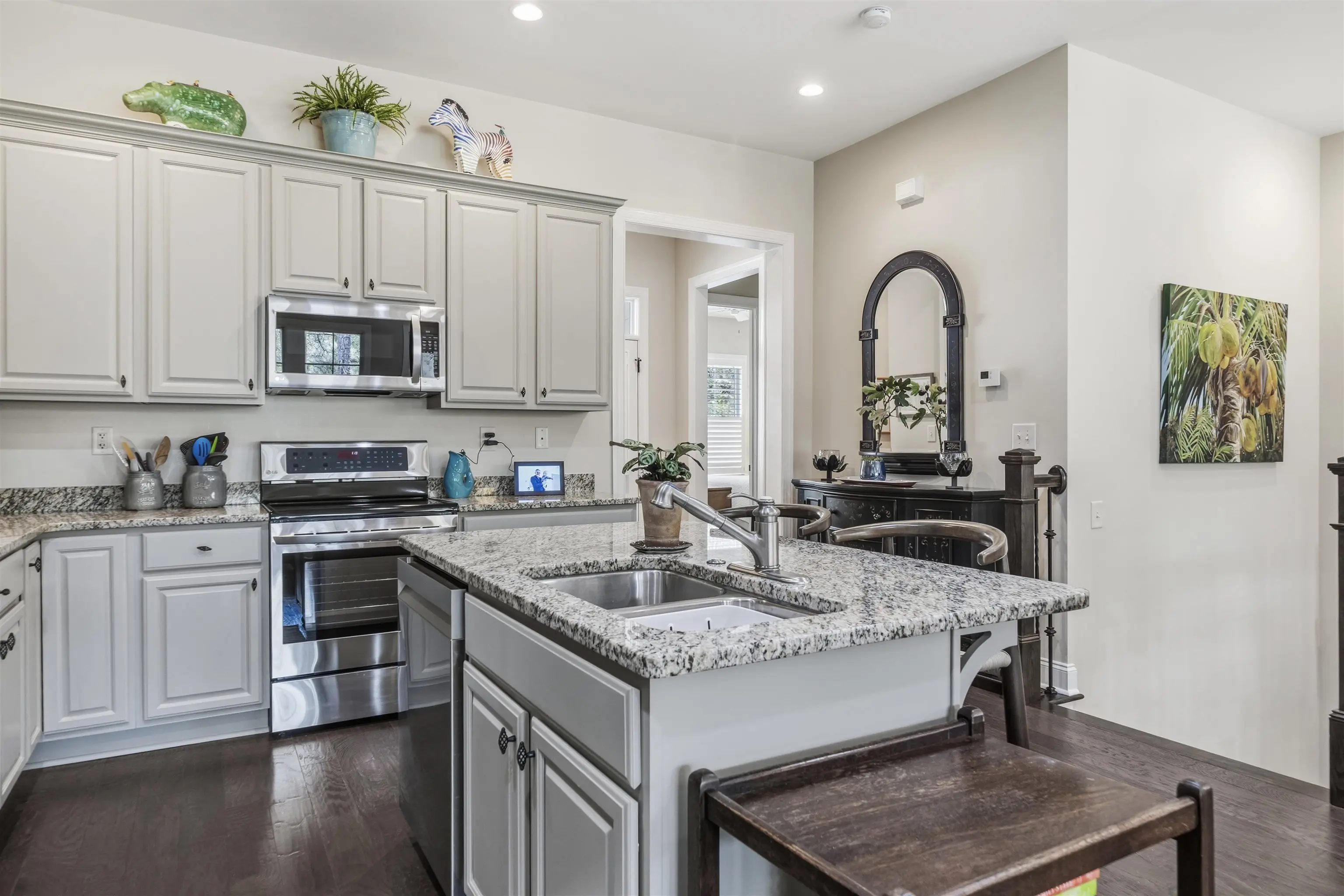 - AppliancesBuilt in Microwave, Dishwasher, Dryer, Garbage Disposal, Range, Refrigerator, Washer, StainlessSteel Appliances